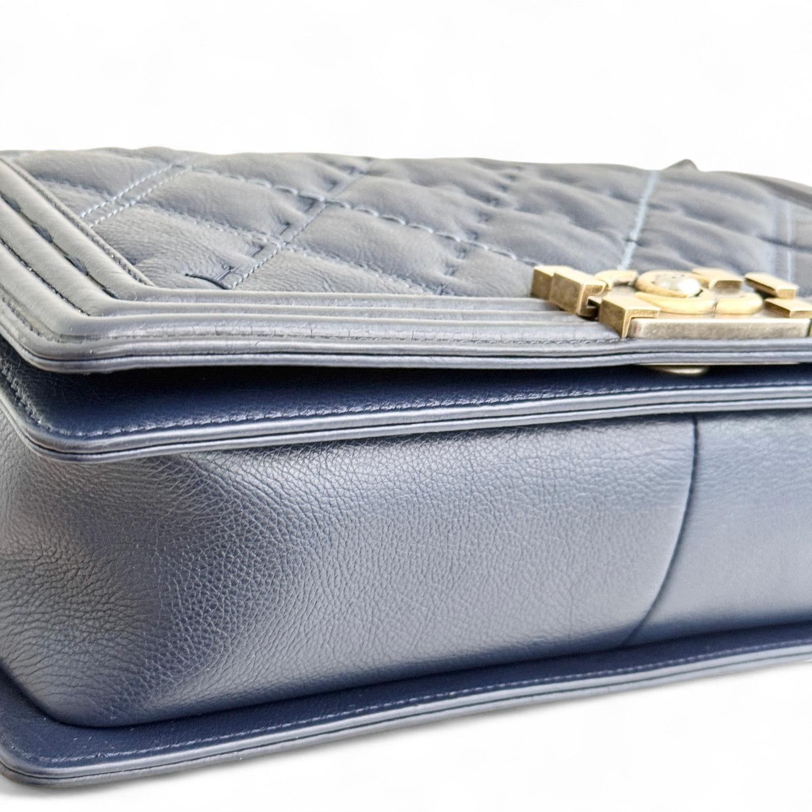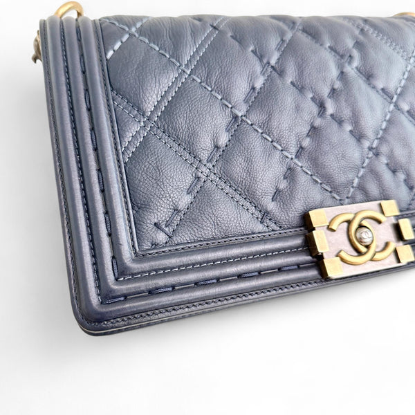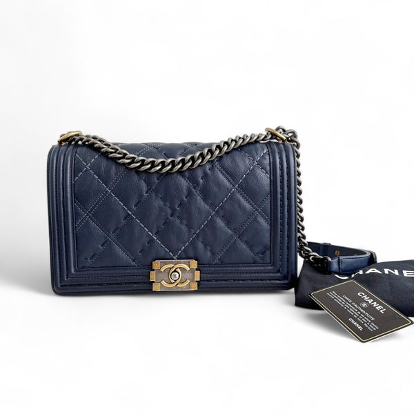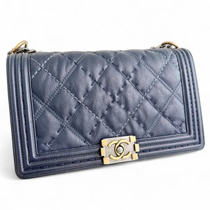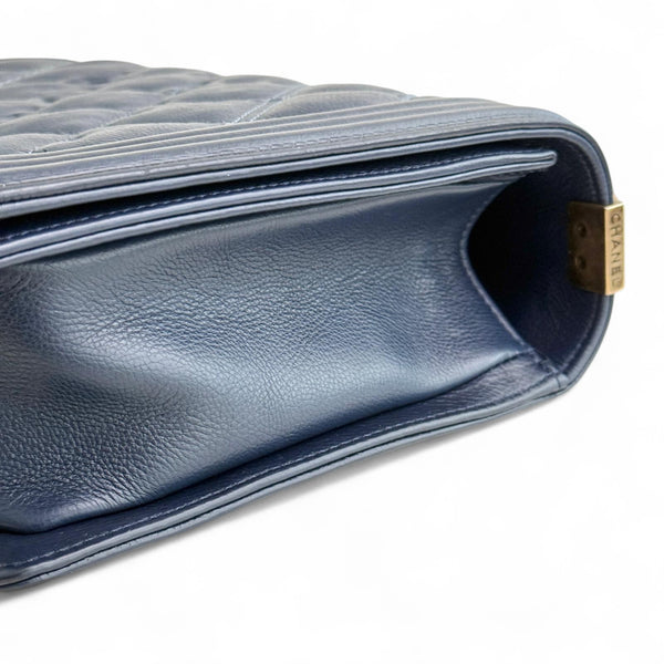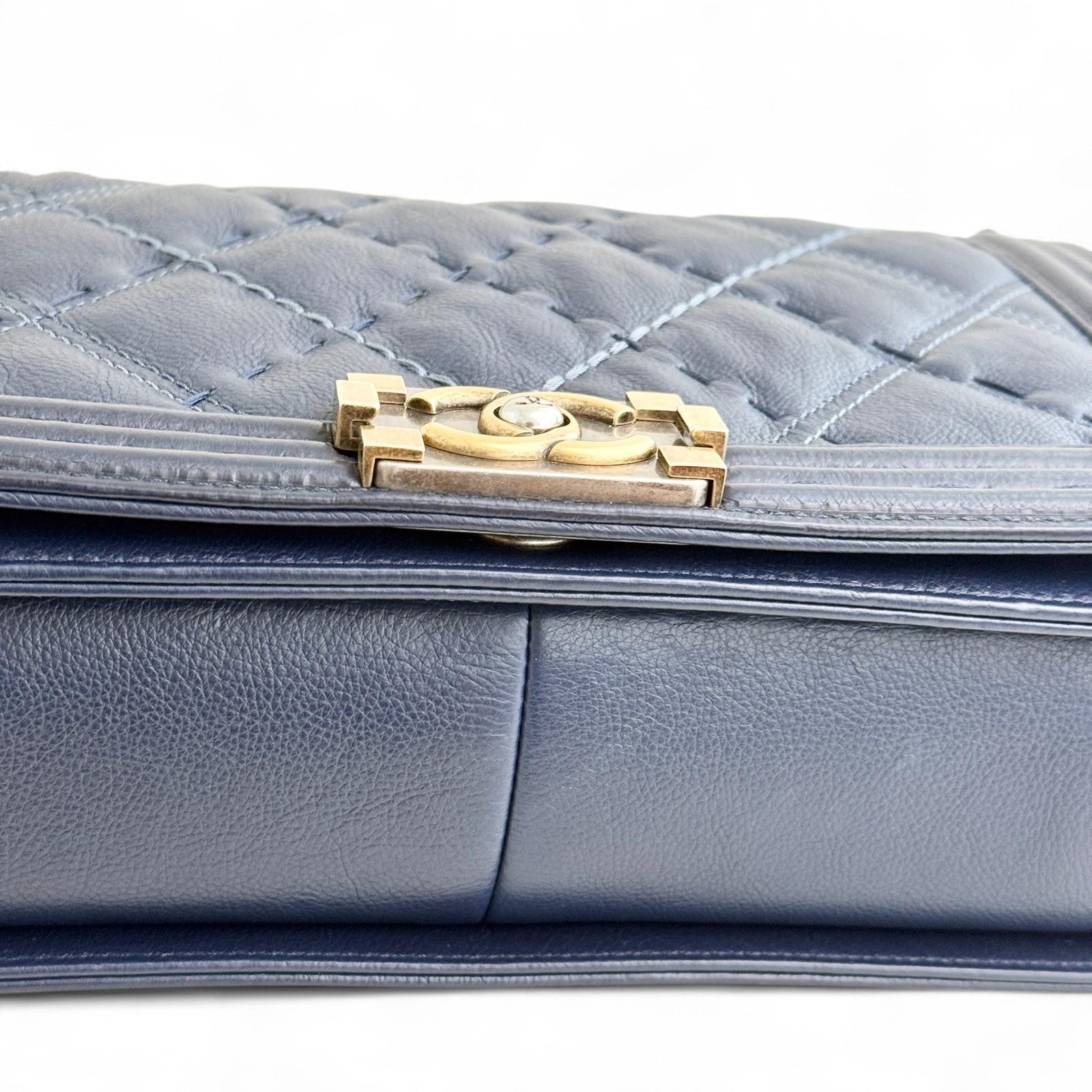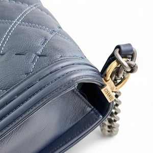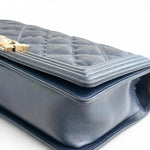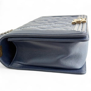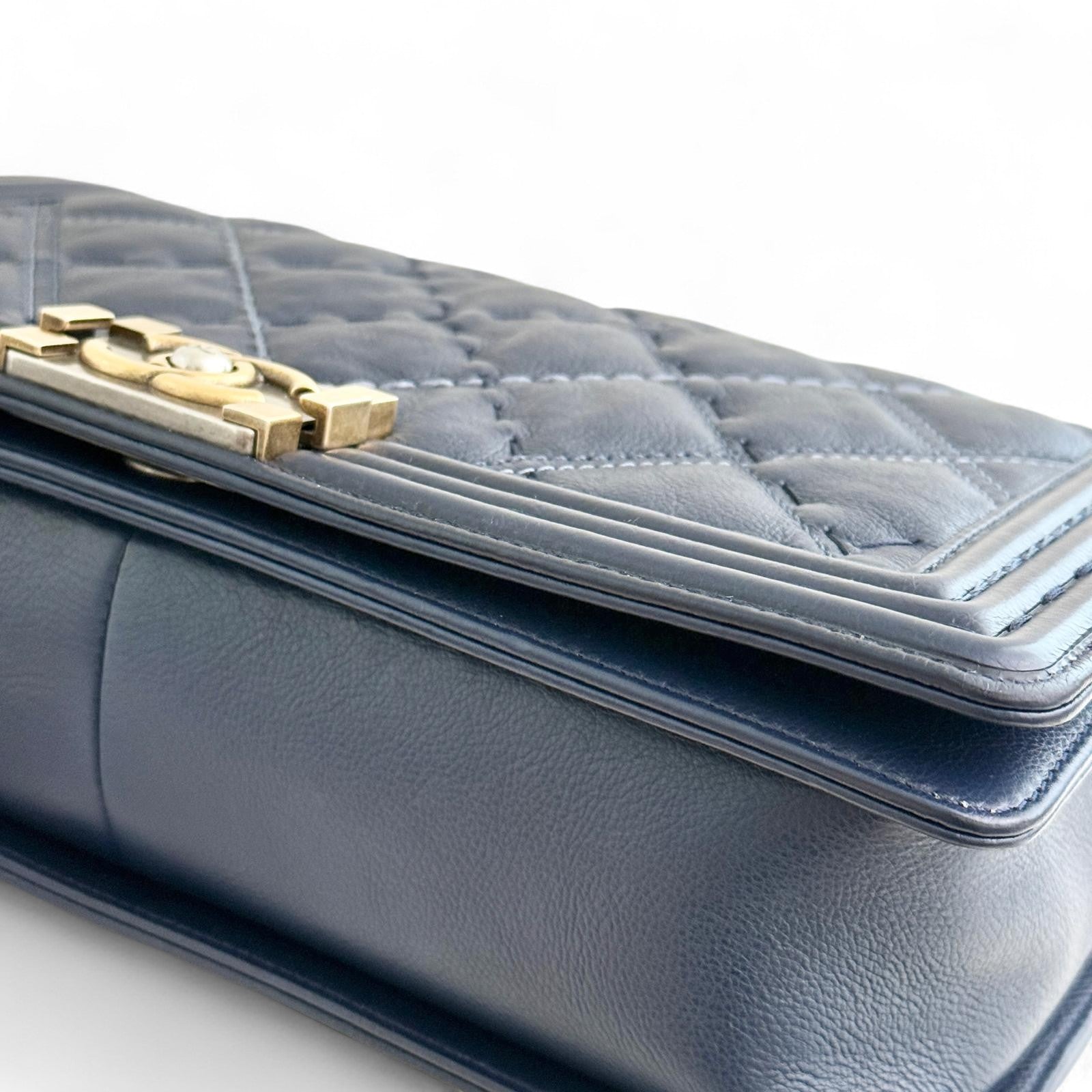 Chanel Leboy New Medium Dark Blue Diamond Stitched Calfskin, Aged Gold-tone Hardware