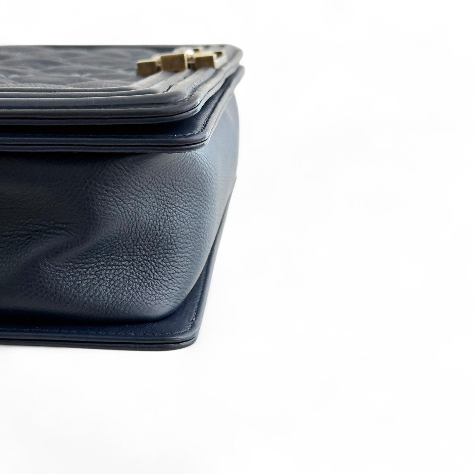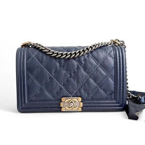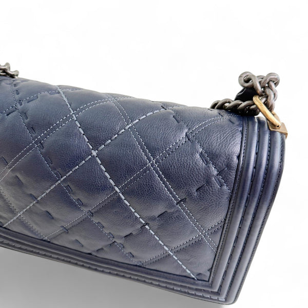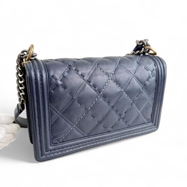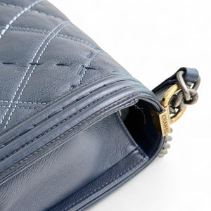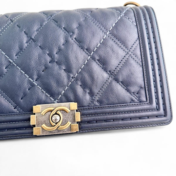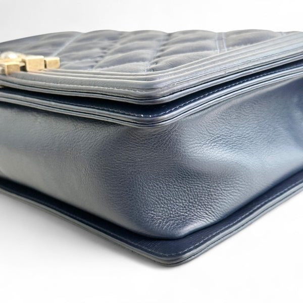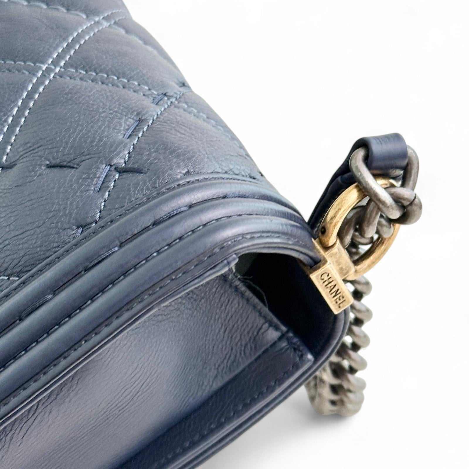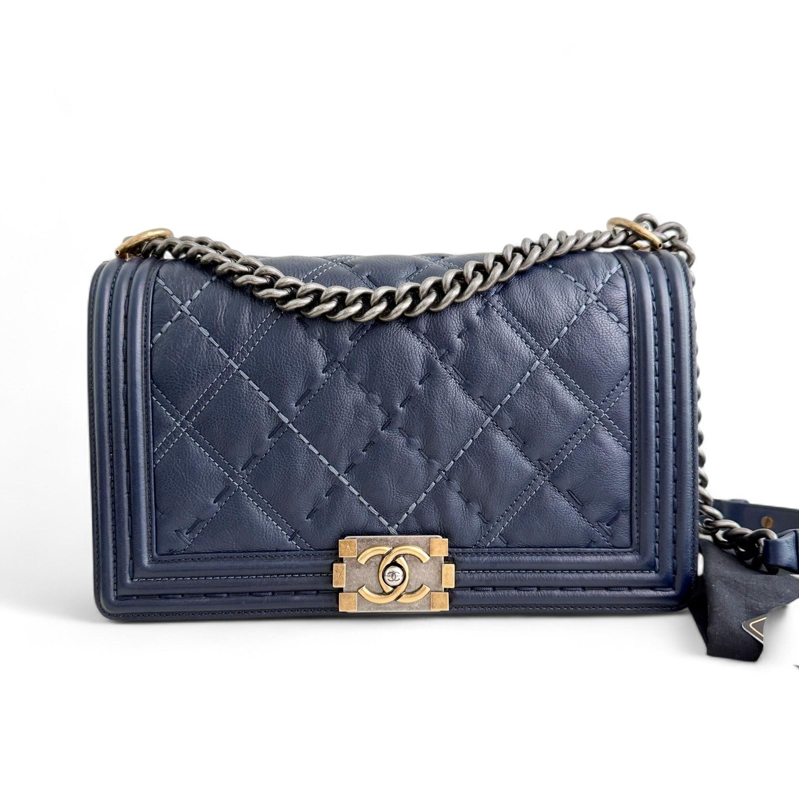 Chanel Leboy New Medium Dark Blue Diamond Stitched Calfskin, Aged Gold-tone Hardware