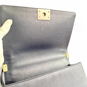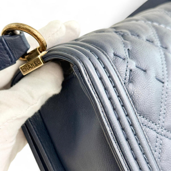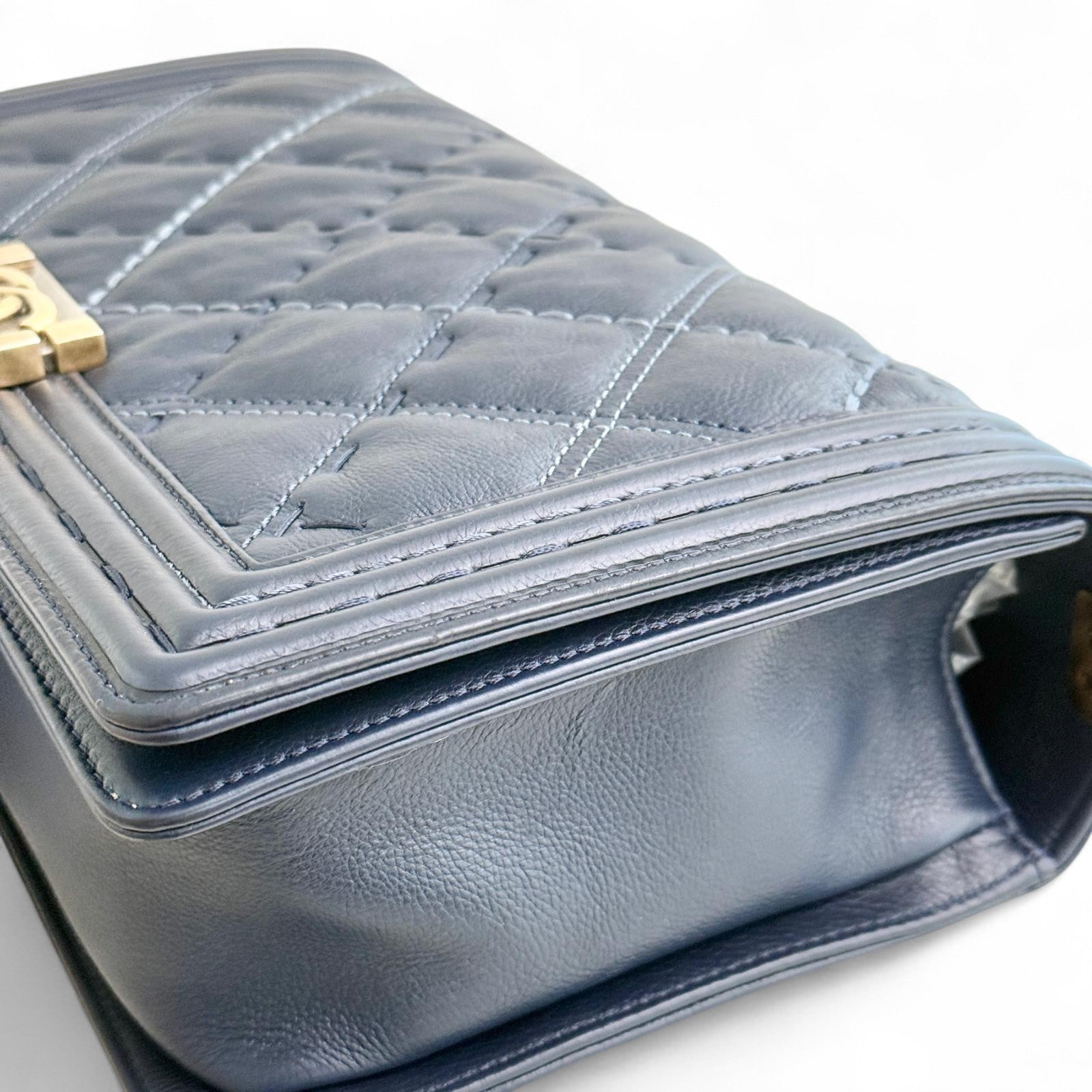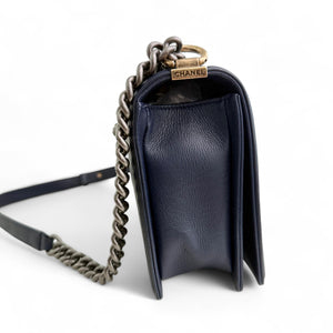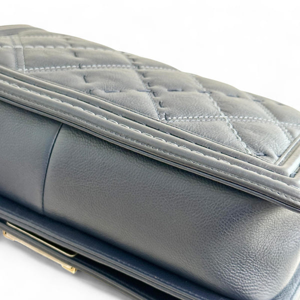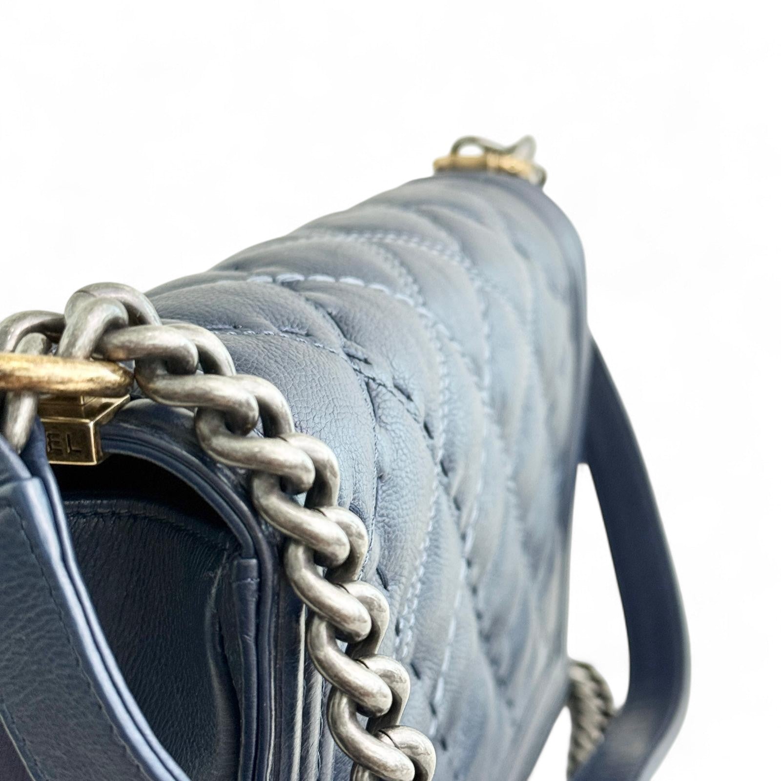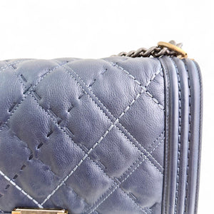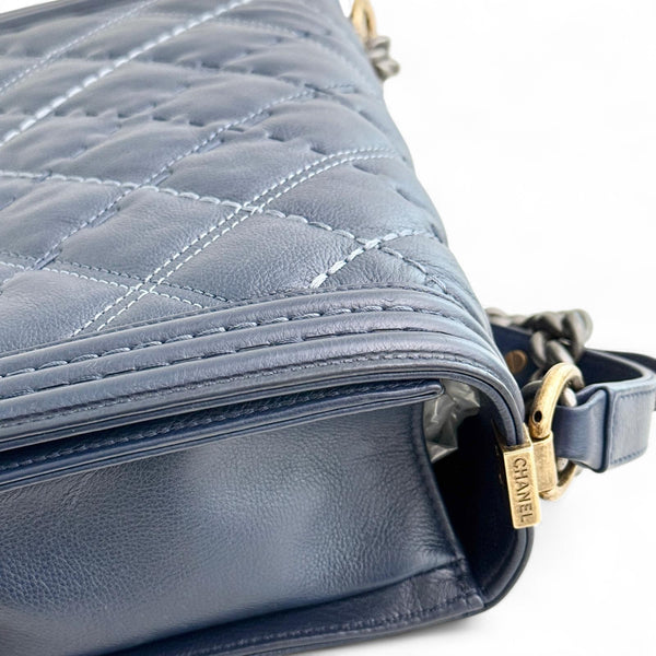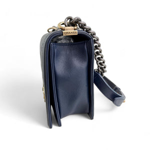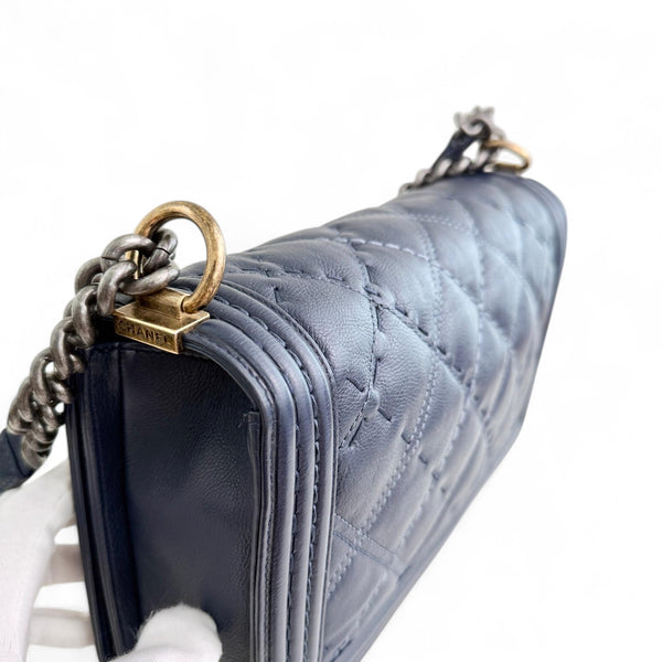 Chanel Leboy New Medium Dark Blue Diamond Stitched Calfskin, Aged Gold-tone Hardware