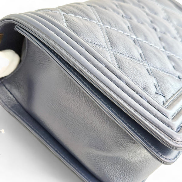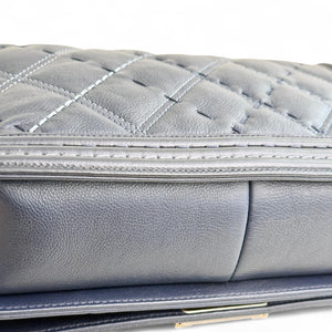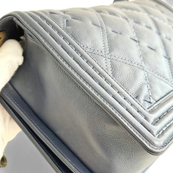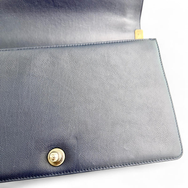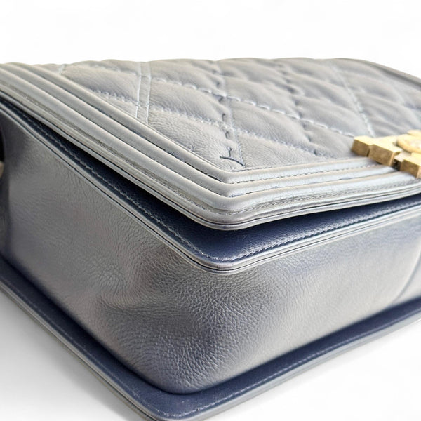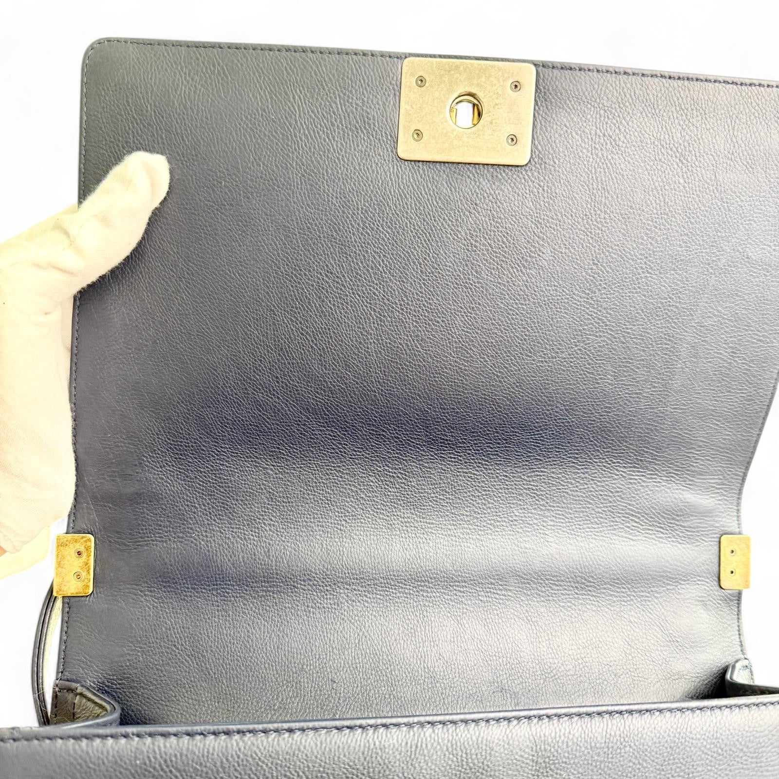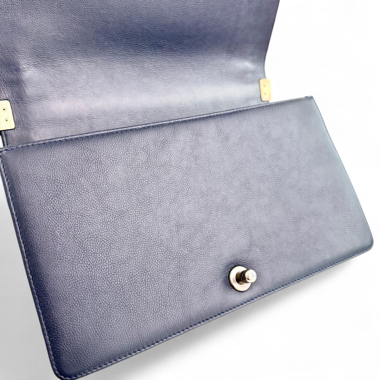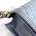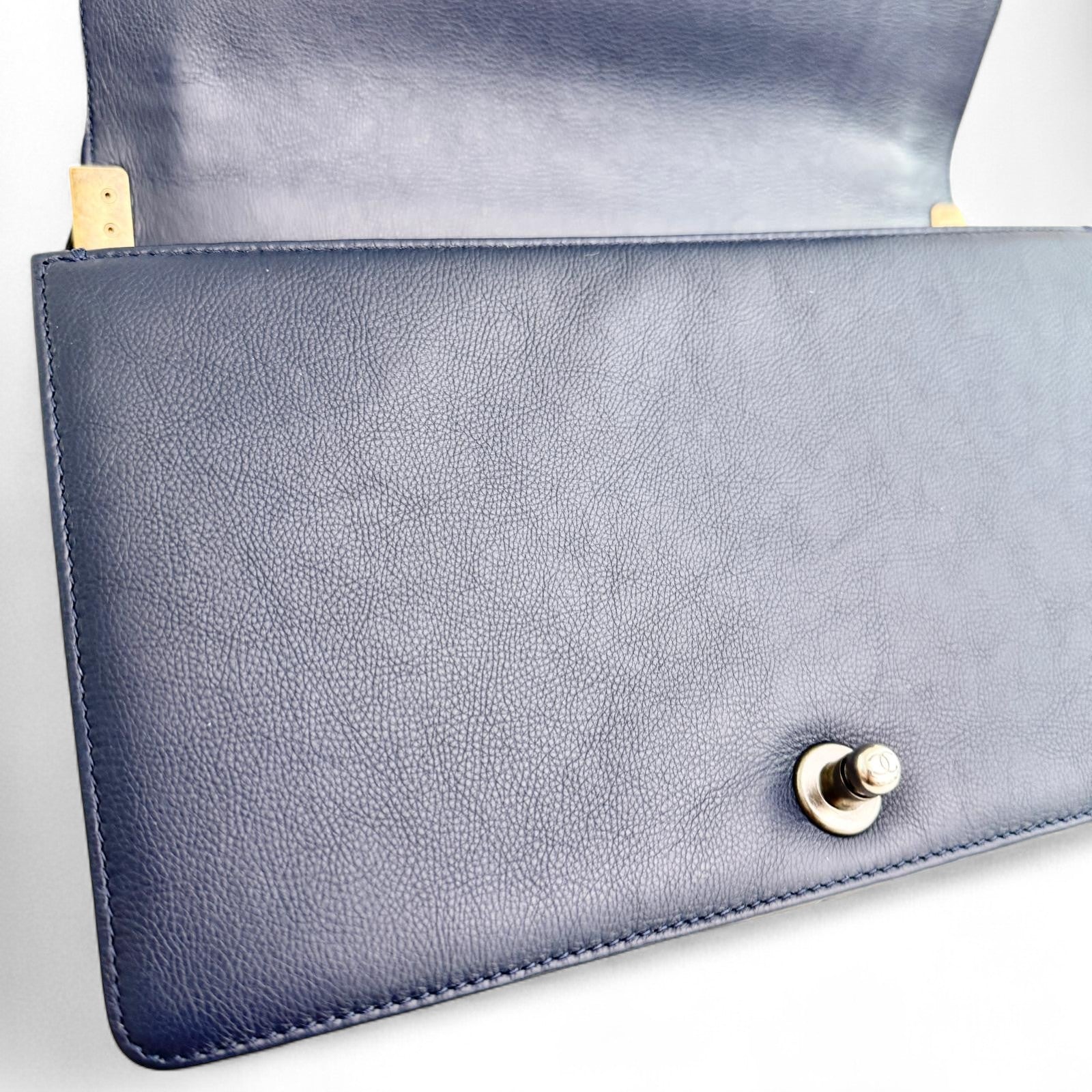 Chanel Leboy New Medium Dark Blue Diamond Stitched Calfskin, Aged Gold-tone Hardware
