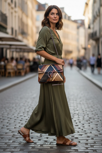 The sliding chain strap offers effortless versatility — wear it long on the shoulder, double it for a shorter drop, or carry it by hand for a polished, evening-ready look. Spacious enough for everyday essentials while keeping a refined profile.