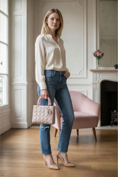 Christian Dior Lady Dior Medium Pink Nude Lambskin Gold-tone Hardware