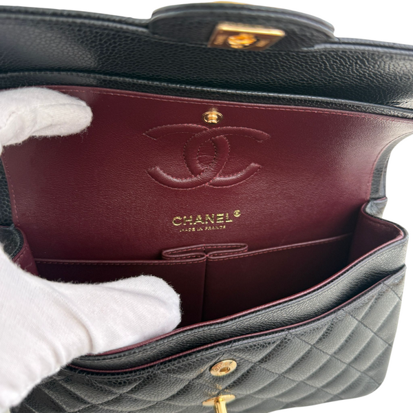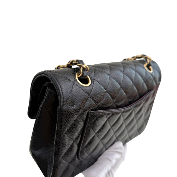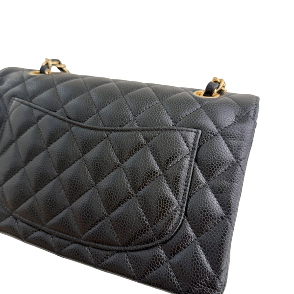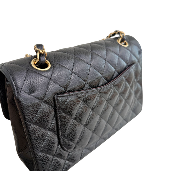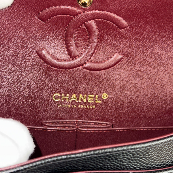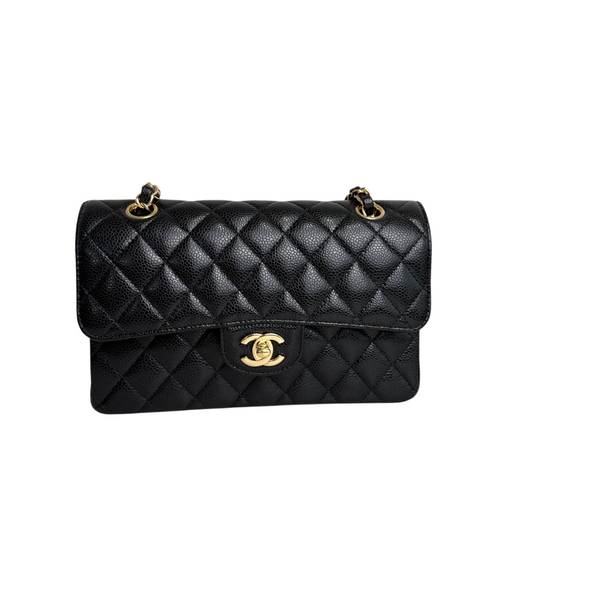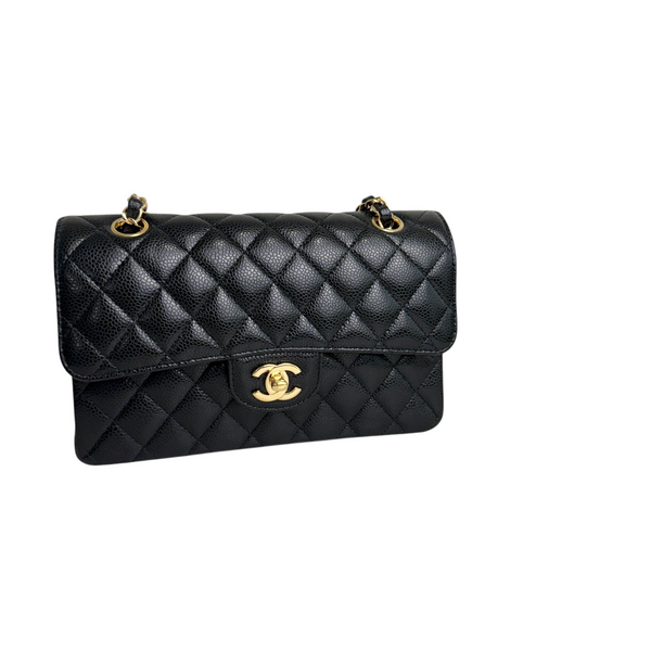 Own a piece of timeless elegance with the Chanel Small Classic Double Flap Bag in luxurious black caviar leather. Featuring the signature quilted design, silver-tone hardware, and the iconic double flap silhouette, this bag is a symbol of sophistication and style.