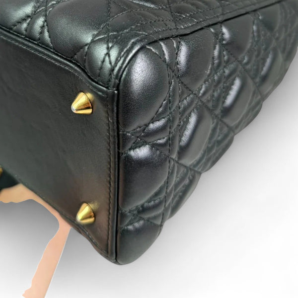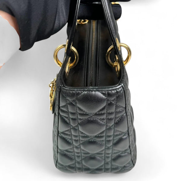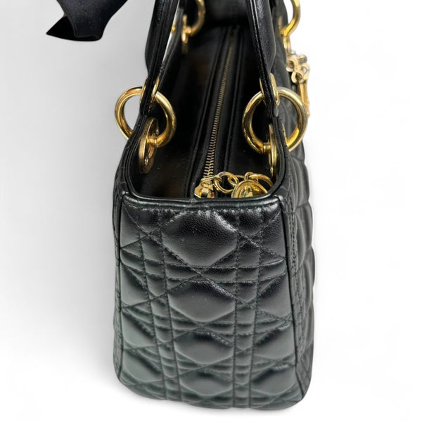 A timeless emblem of luxury, this Christian Dior Lady Dior Medium in black lambskin is the epitome of refined elegance. Meticulously crafted in Dior’s iconic Cannage quilting, the buttery-soft lambskin leather enhances its structured silhouette with a supple, luxurious feel.