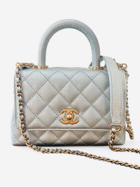 Chanel Coco Handle Extra Mini Quilted Iridescent Blue Caviar Gold-tone Hardware