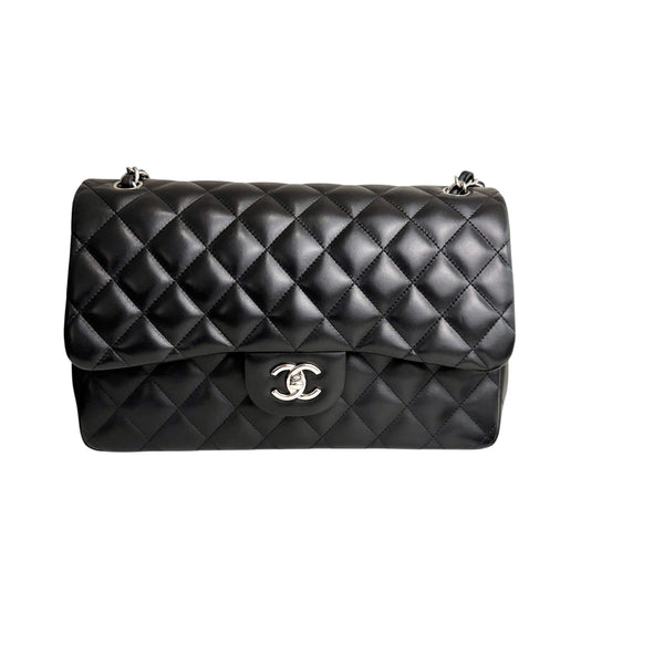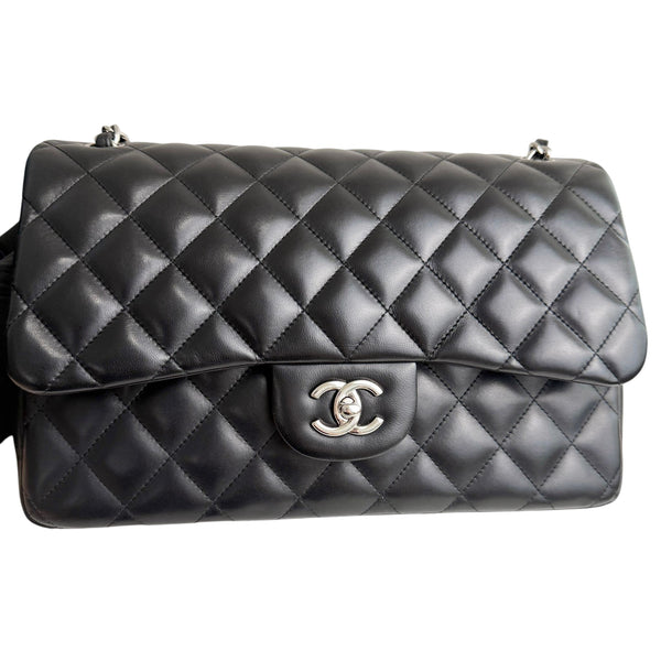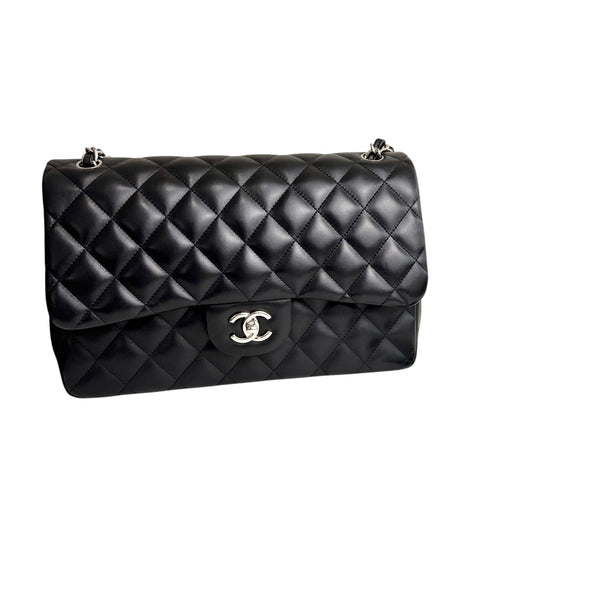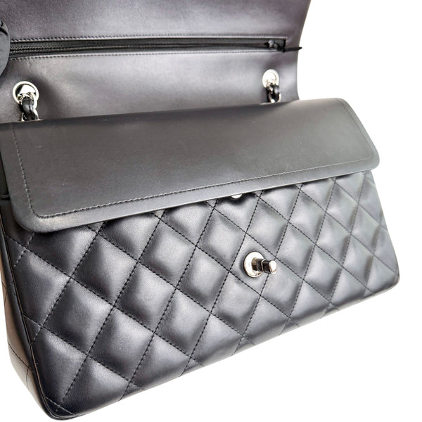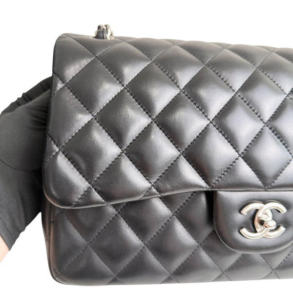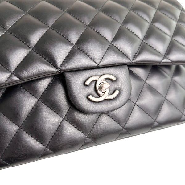 Chanel Timeless Classic Jumbo Black Lambskin Silver-tone Hardware