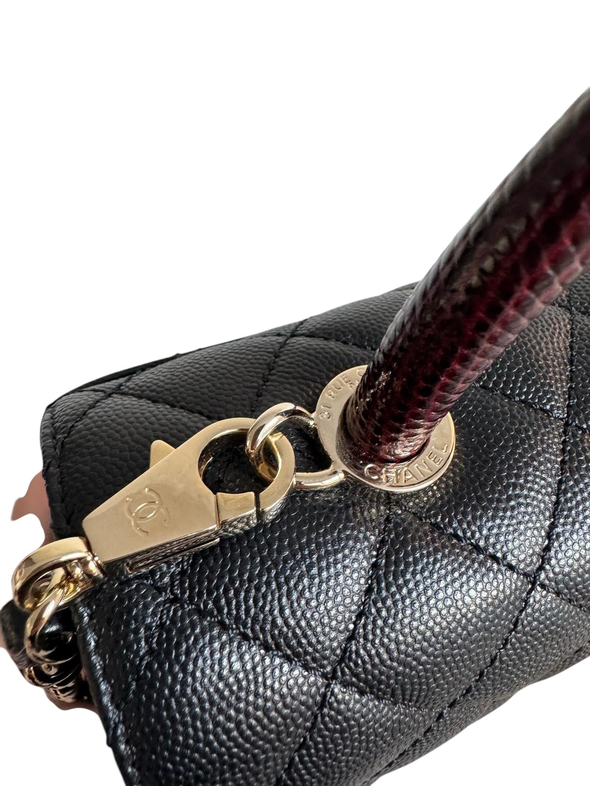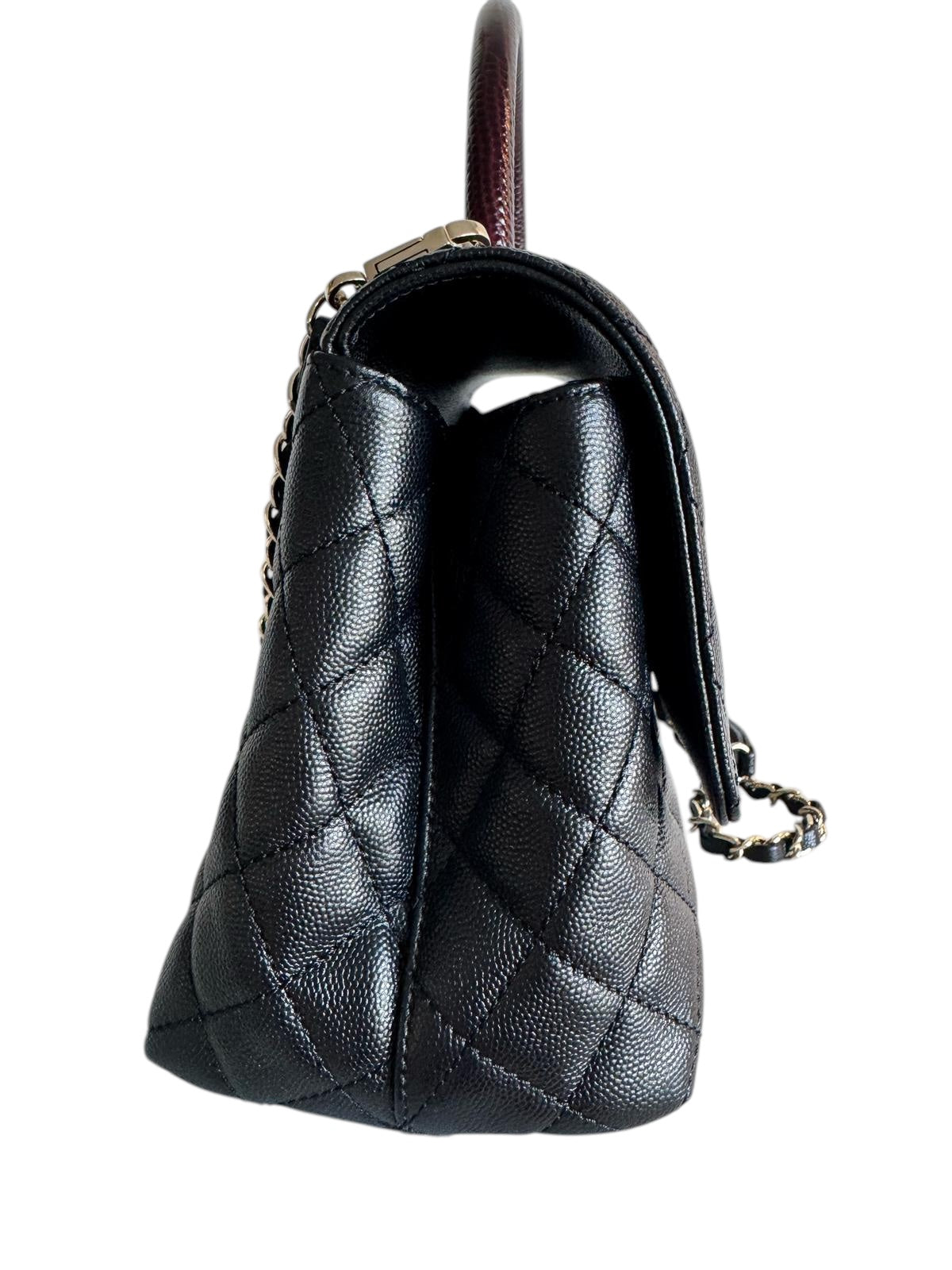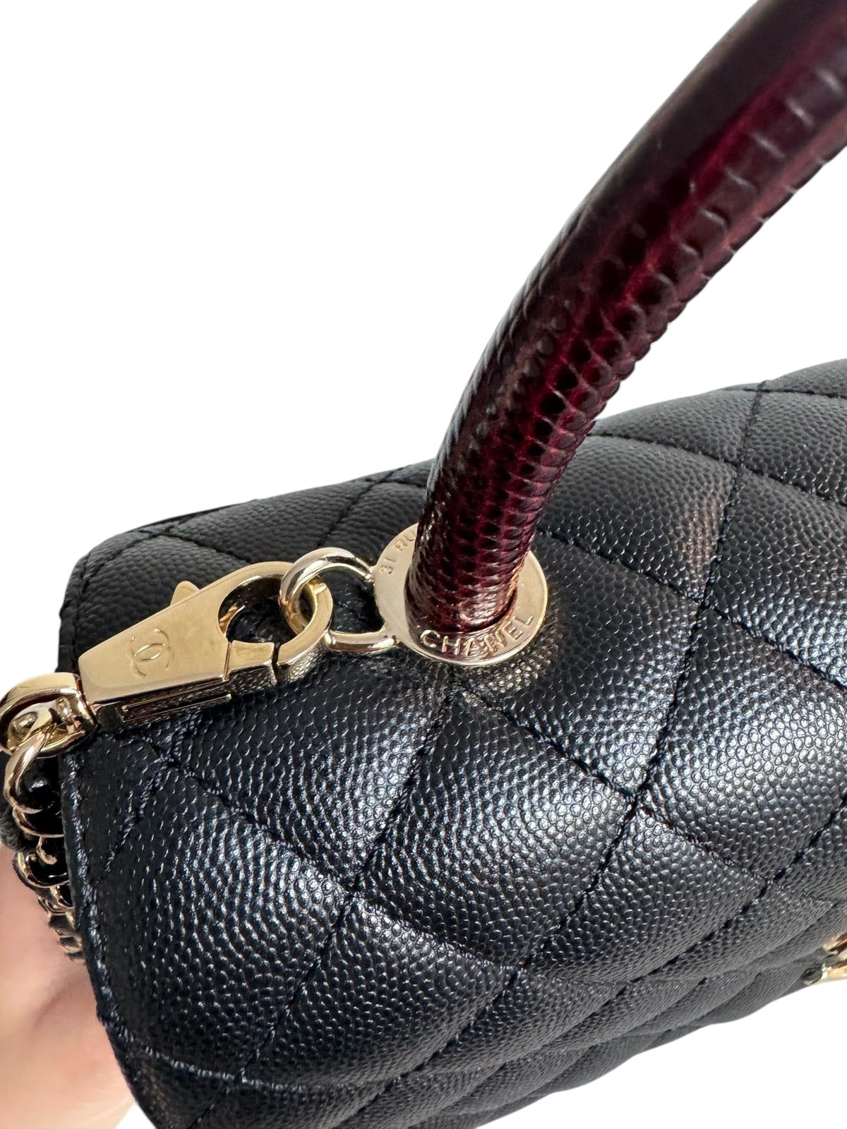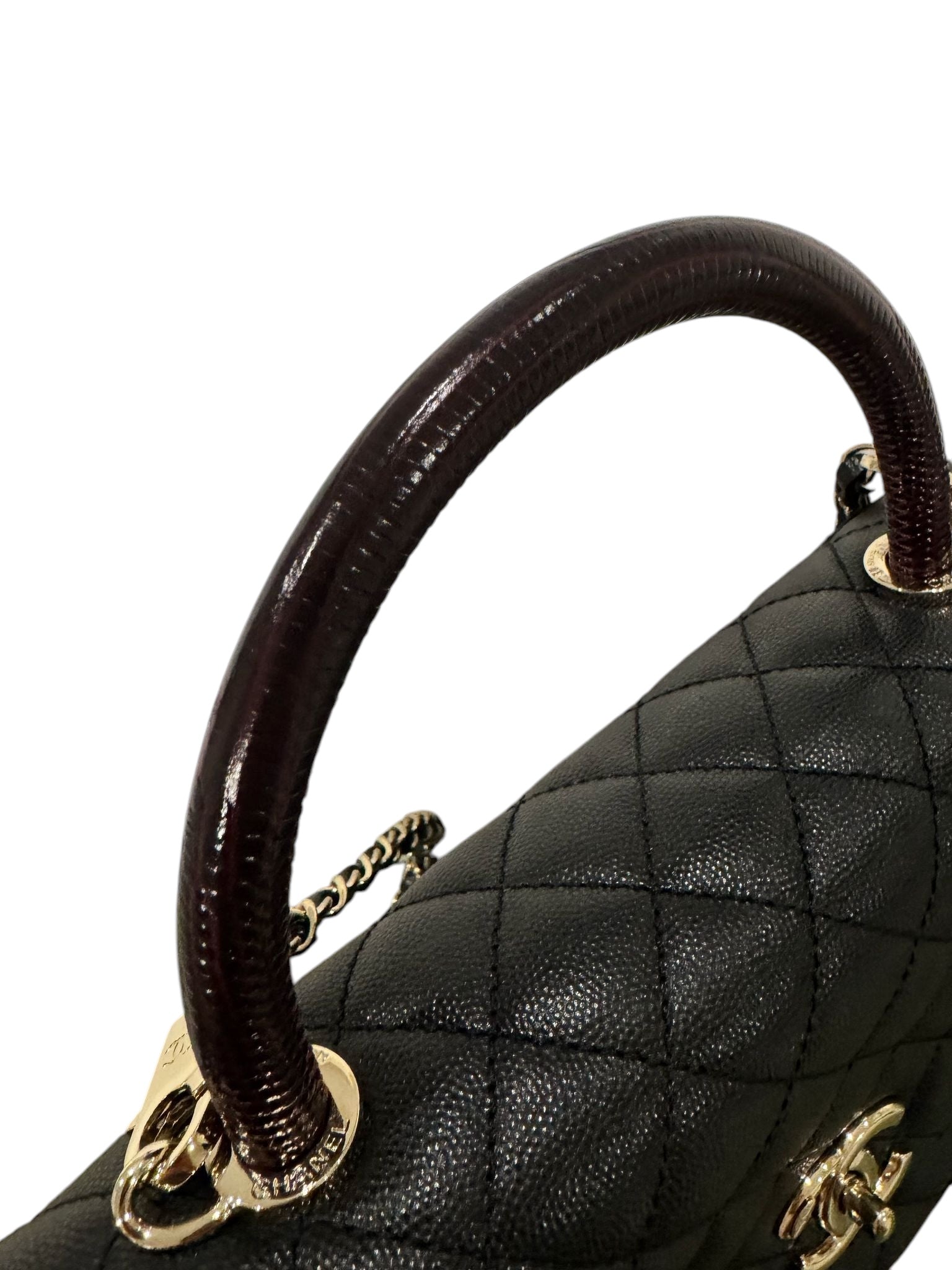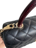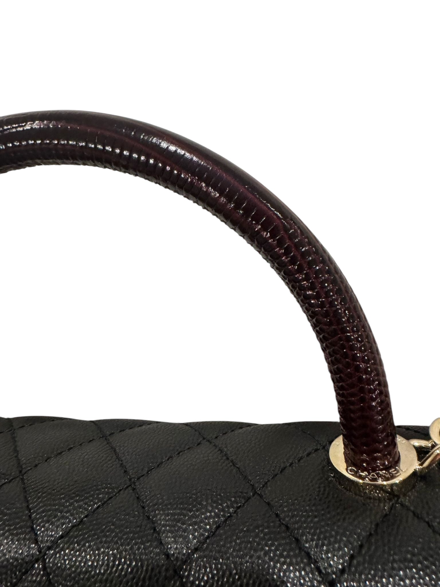 Chanel Coco Handle Medium, Black Caviar Gold-tone Hardware Burgundy Lizard-Embossed Handle