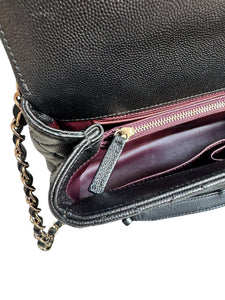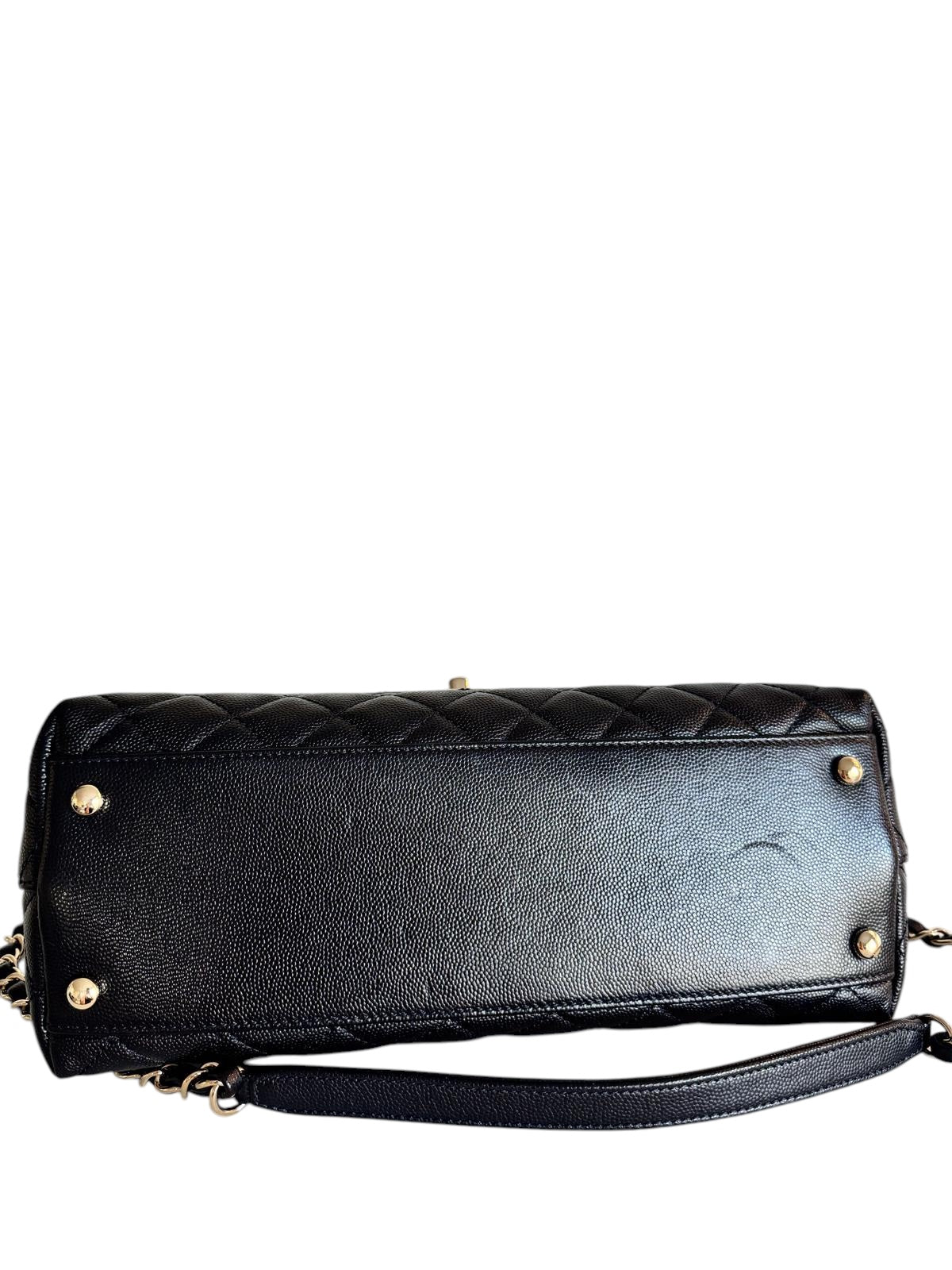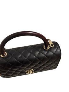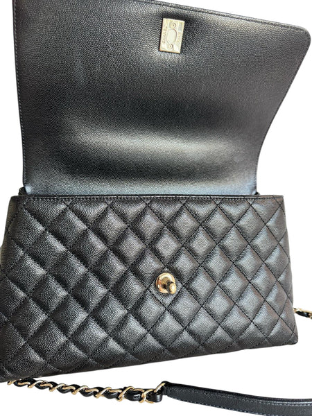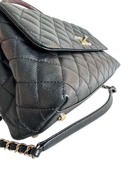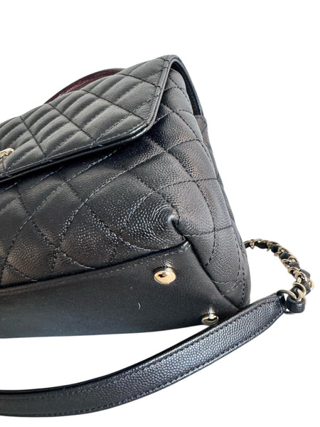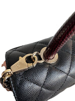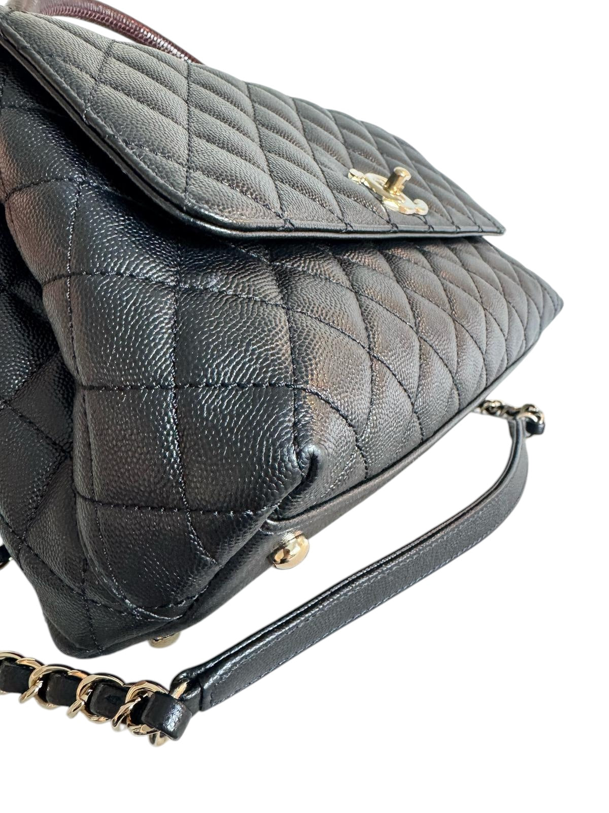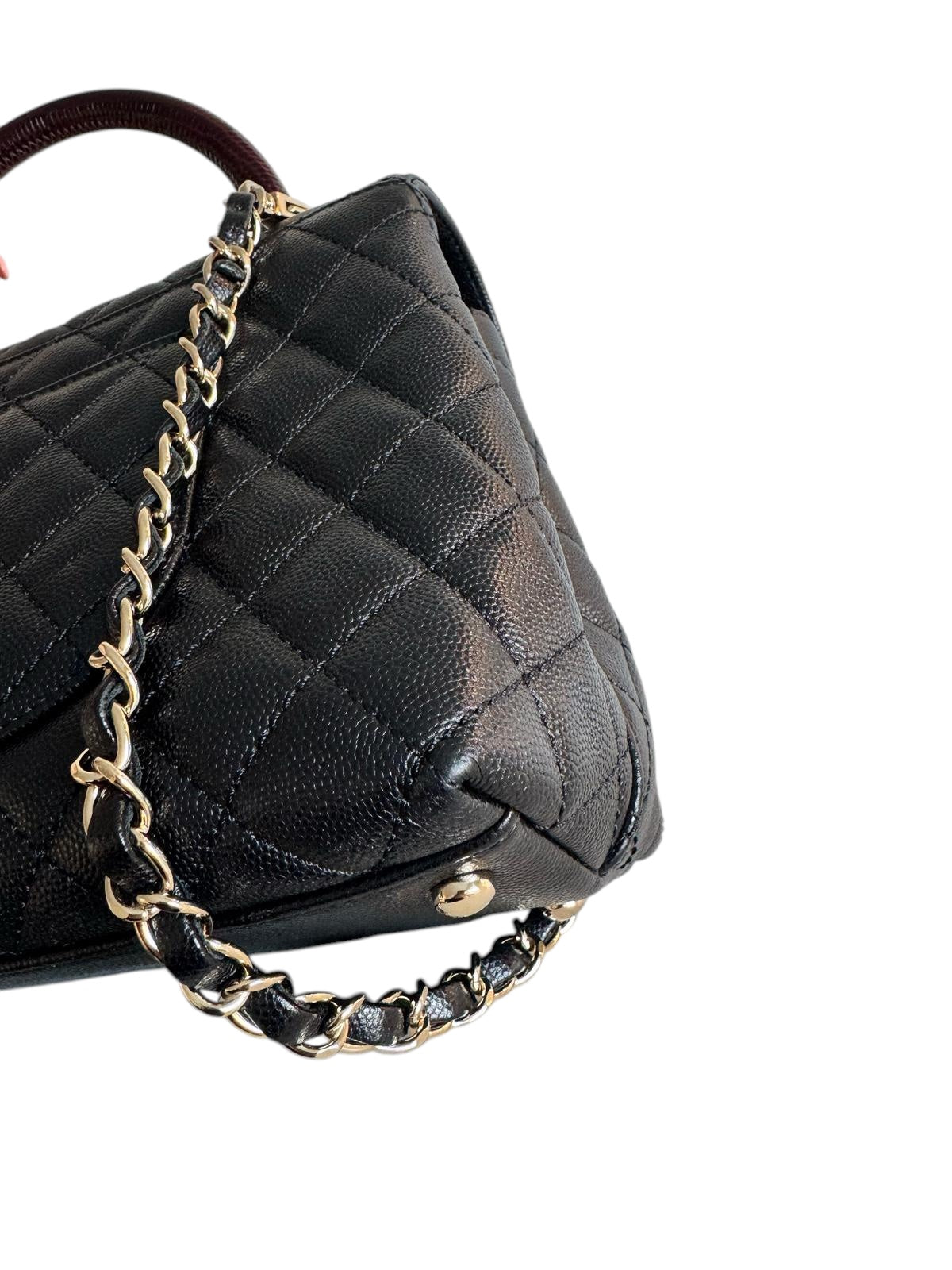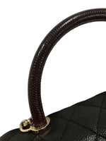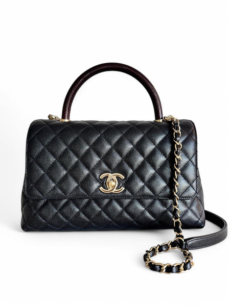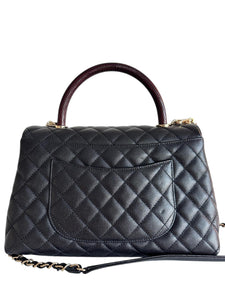 Chanel Coco Handle Medium, Black Caviar Gold-tone Hardware Burgundy Lizard-Embossed Handle