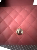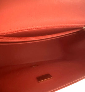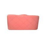 This Chanel Classic Mini Square Flap Bag in Coral Pink Lambskin is a stunning piece that blends timeless elegance with a playful pop of color. Rendered in soft and supple lambskin, its compact silhouette is elevated by the signature diamond quilting, interlocking CC turn-lock, and elegant gold-tone hardware.