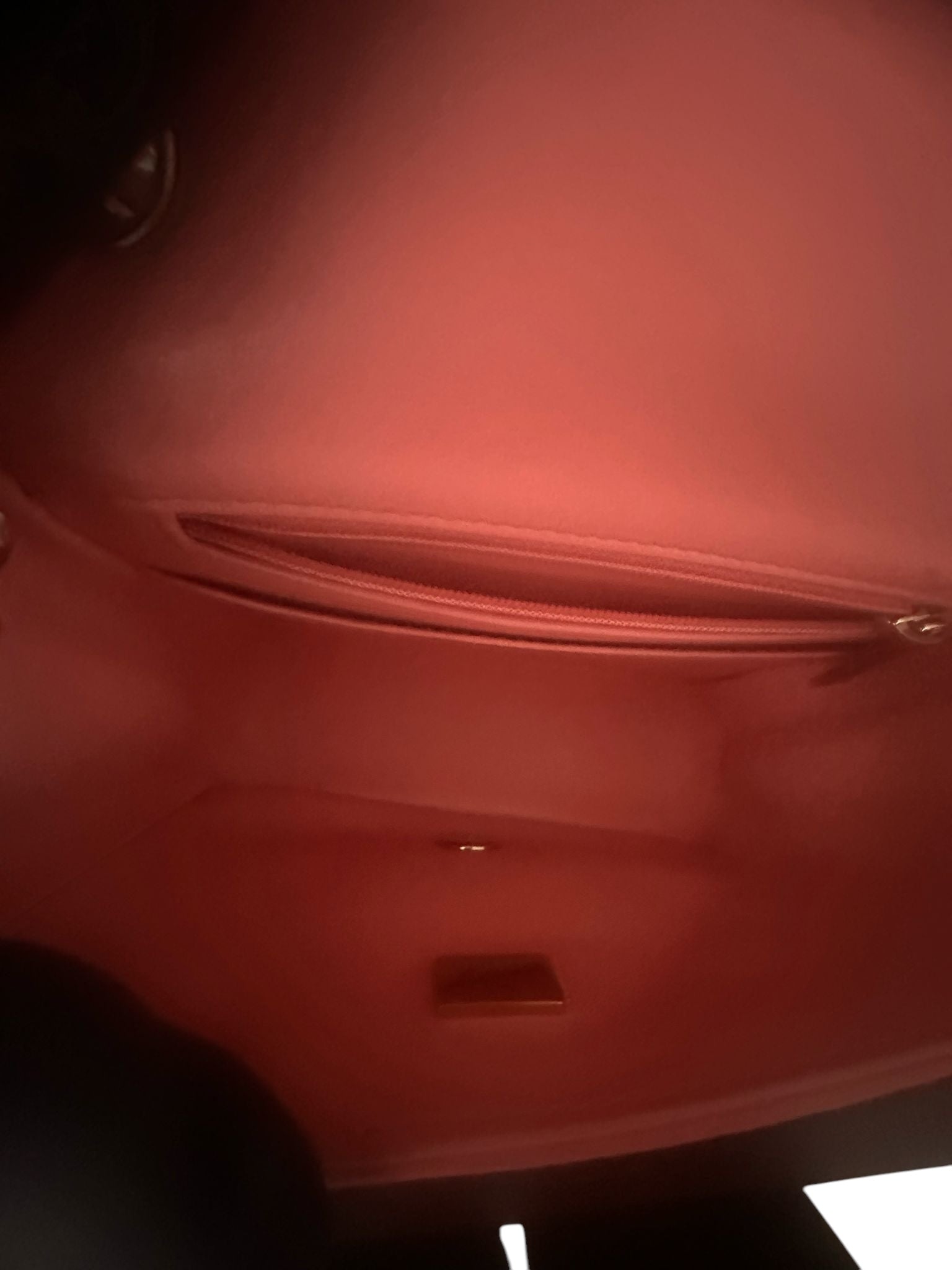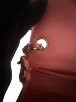 The delicate peach-pink hue adds a refreshing charm, perfect for both day and evening wear. Finished with a slim leather-threaded chain strap, it can be worn comfortably on the shoulder or crossbody for hands-free sophistication.