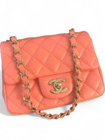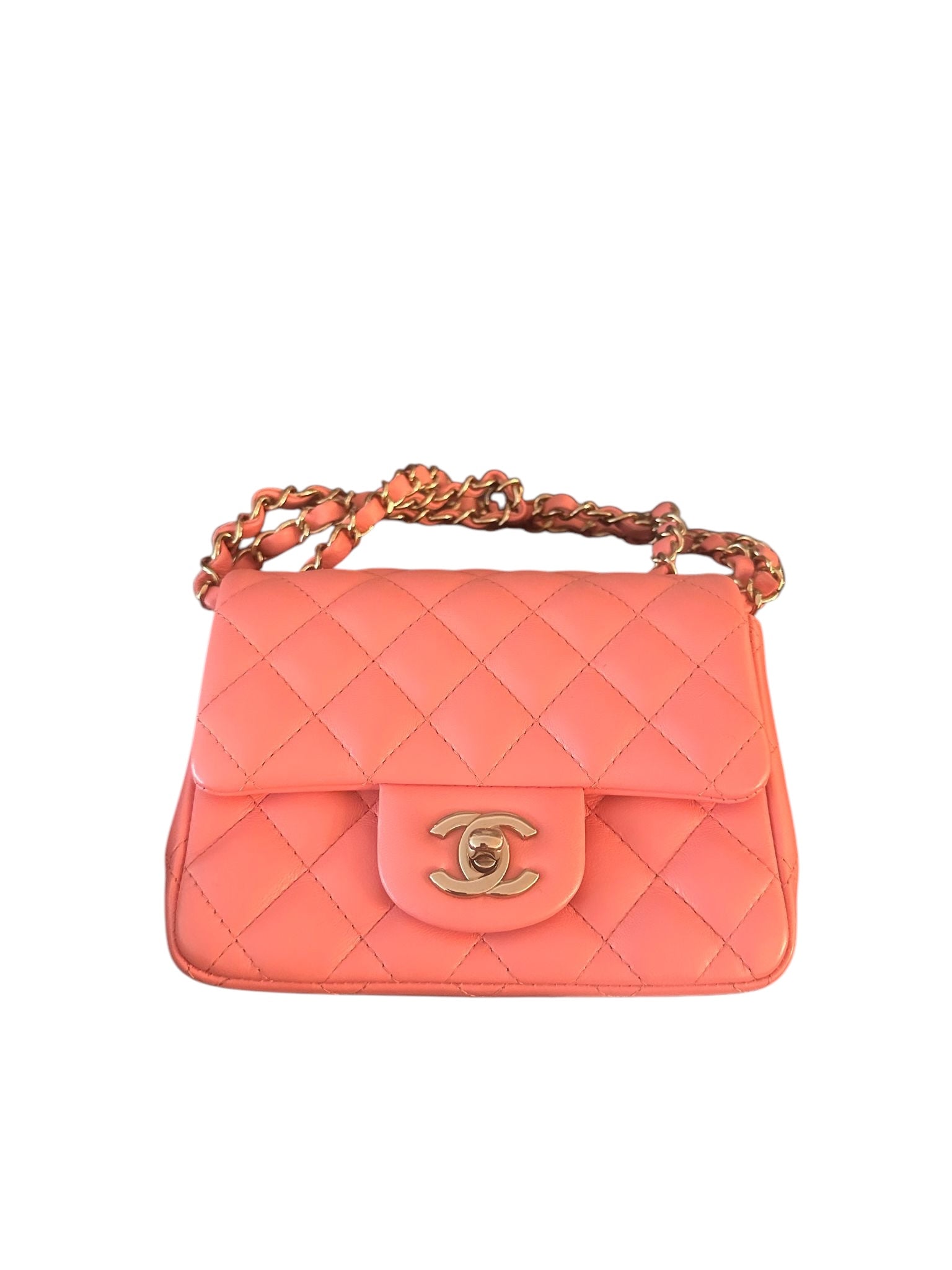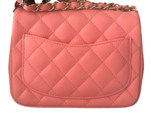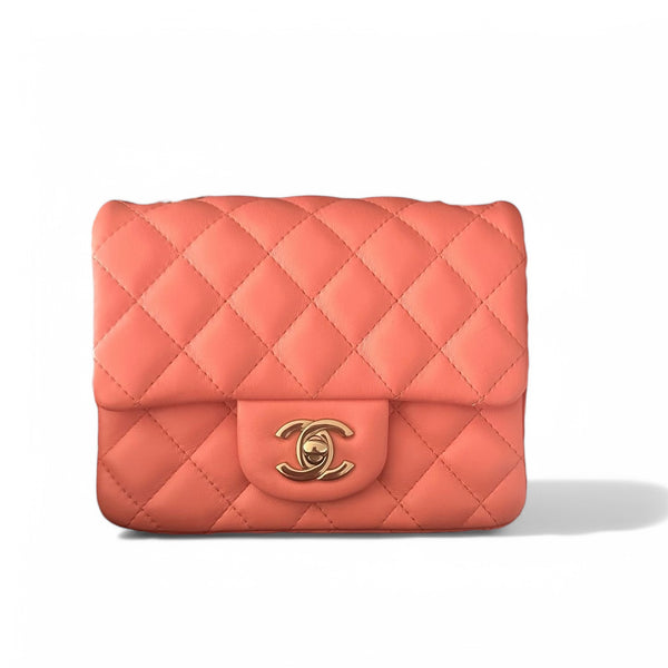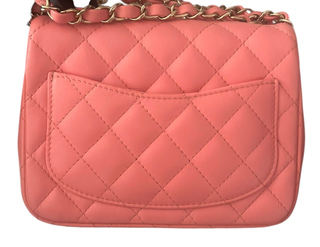 Chanel Classic Mini Square, Coral Pink Lambskin, Gold-tone Hardware