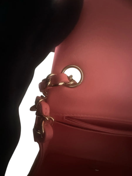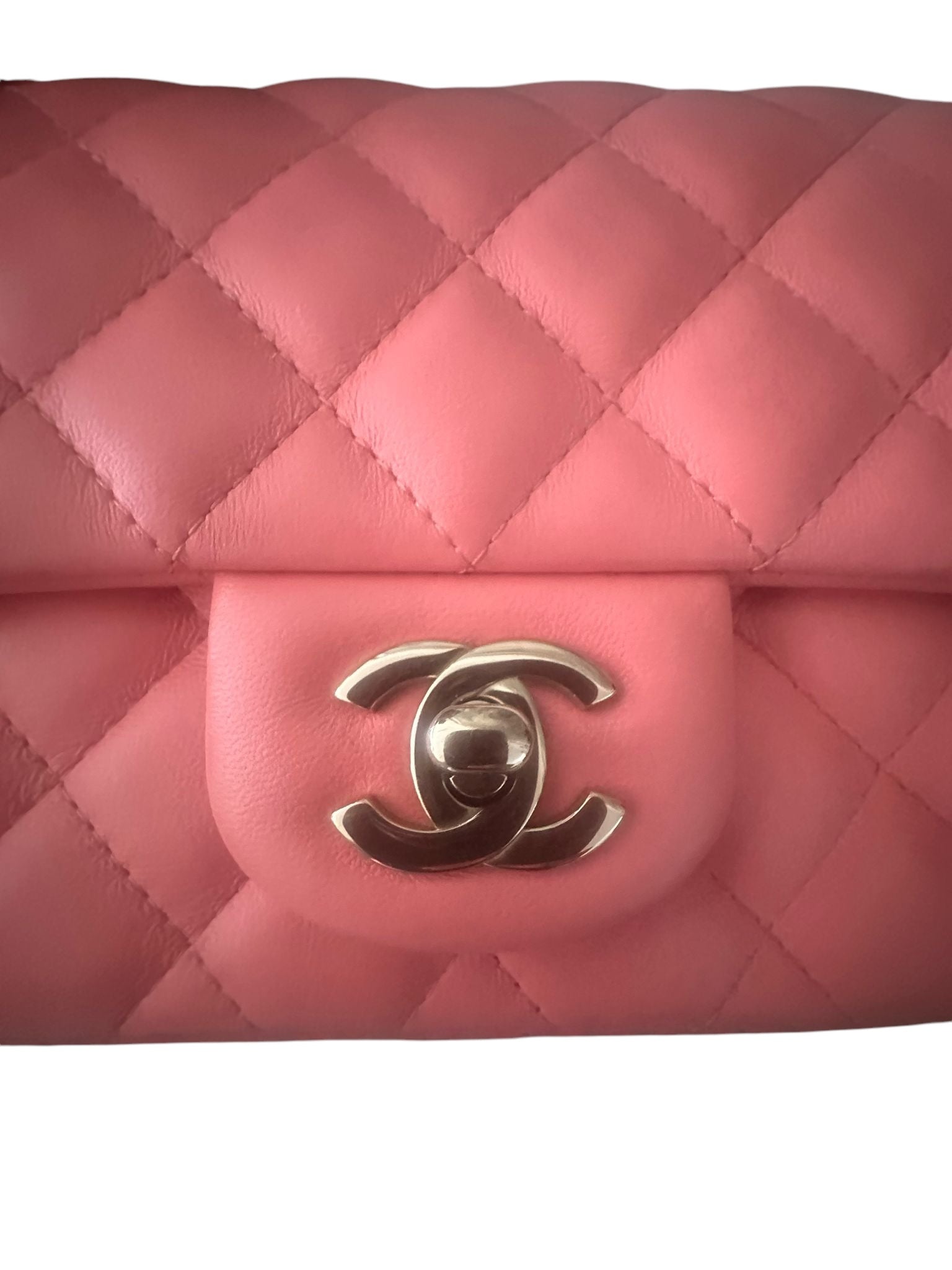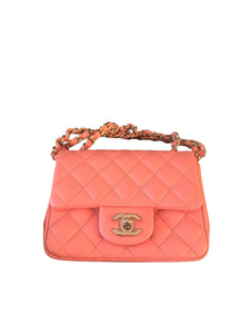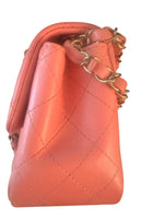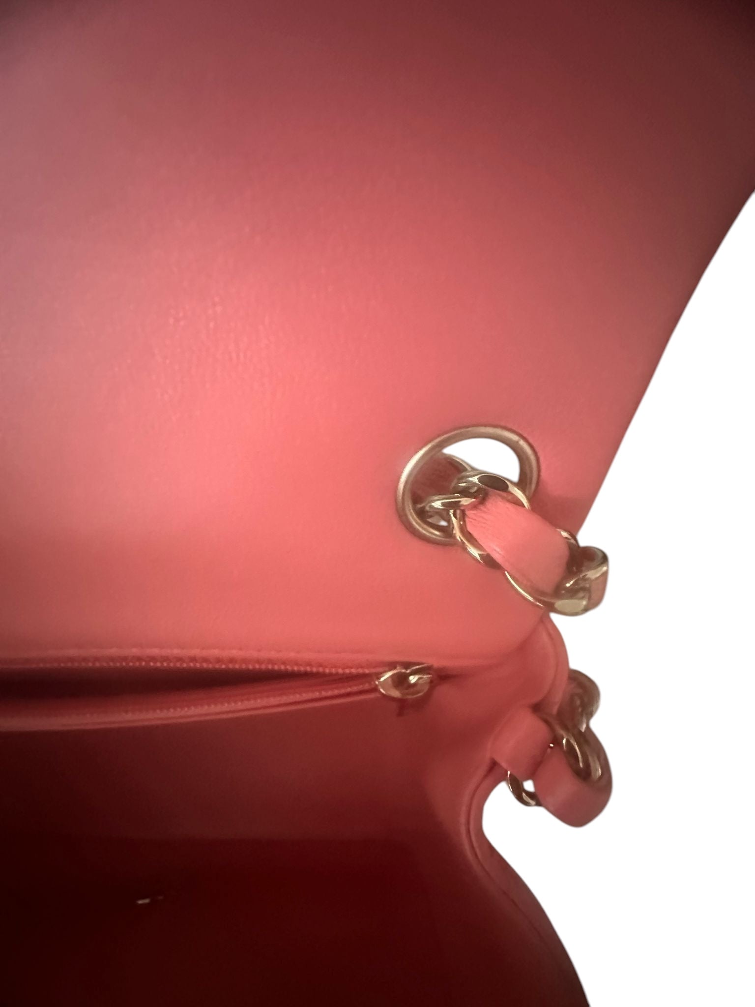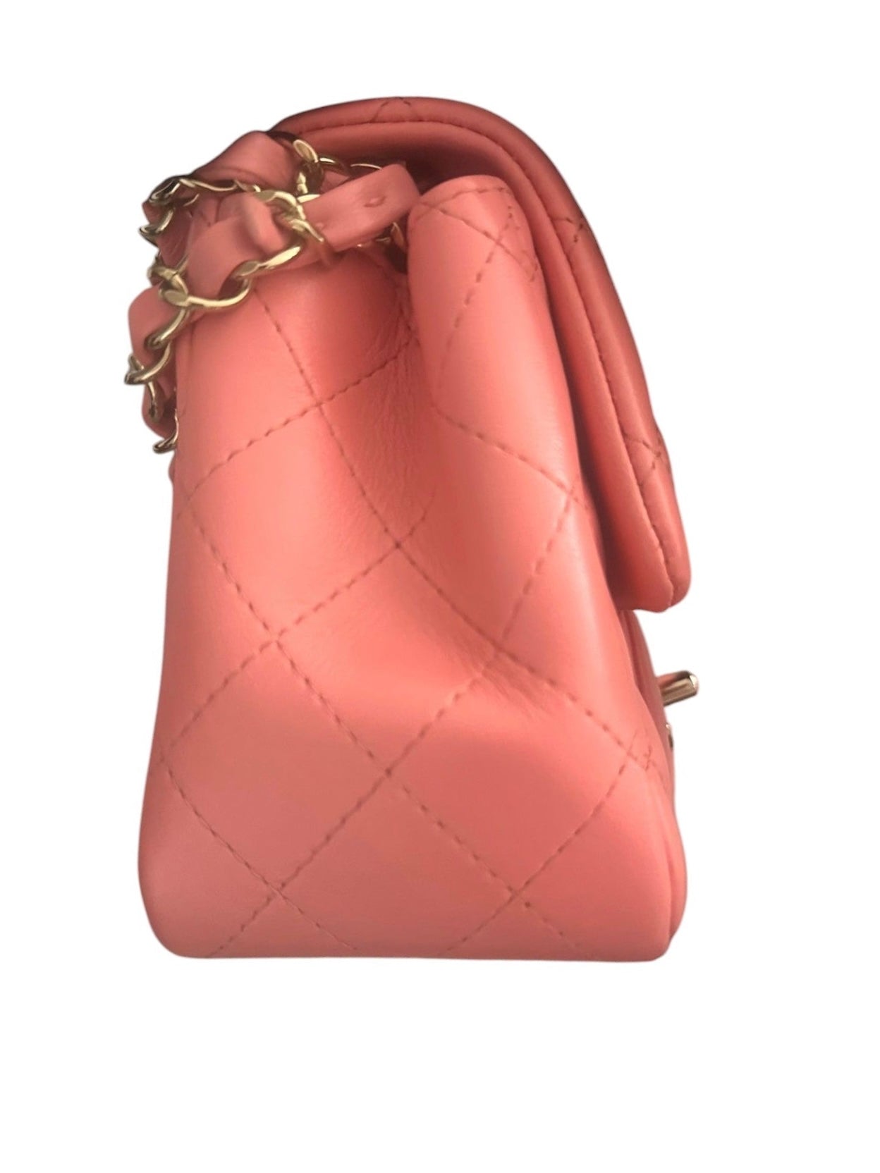 Chanel Classic Mini Square, Coral Pink Lambskin, Gold-tone Hardware