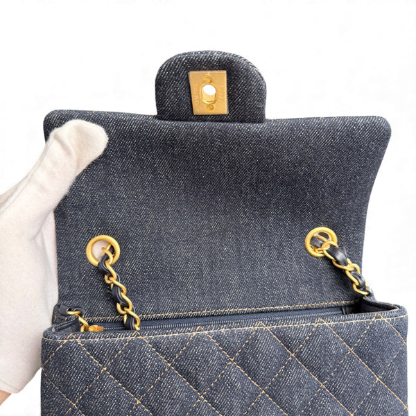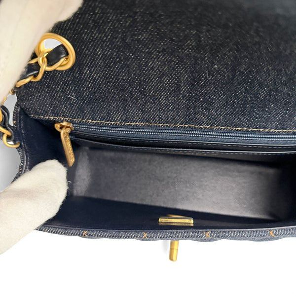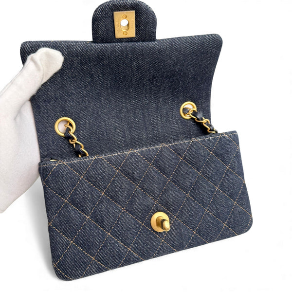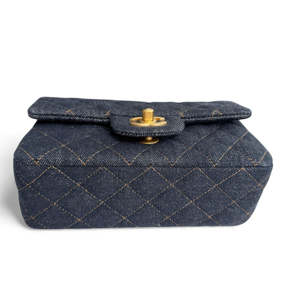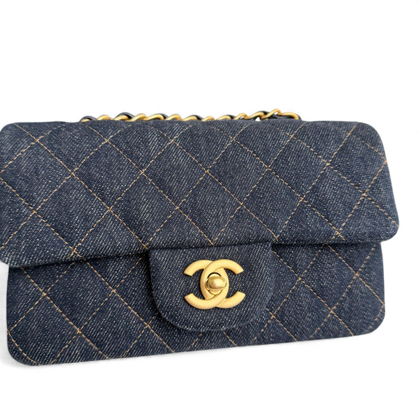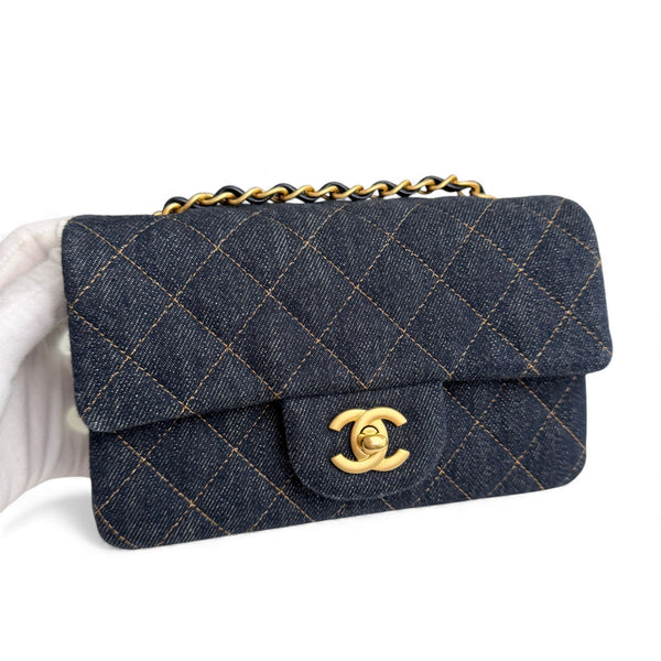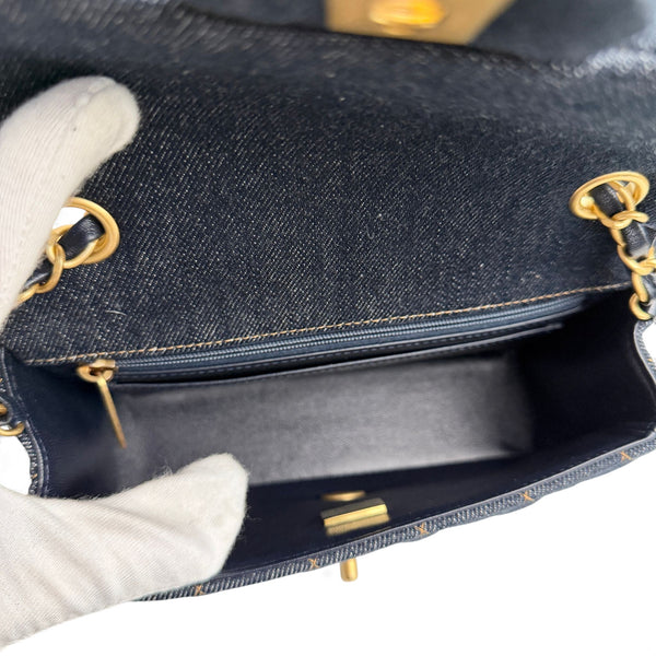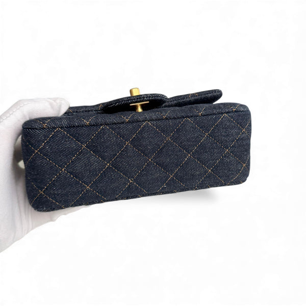Chanel Classic Mini Dark Navy Blue Denim, Gold-tone Hardware