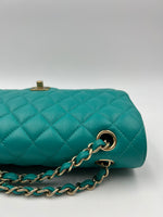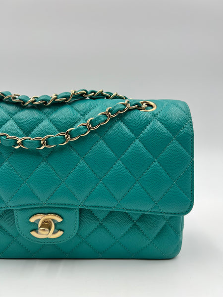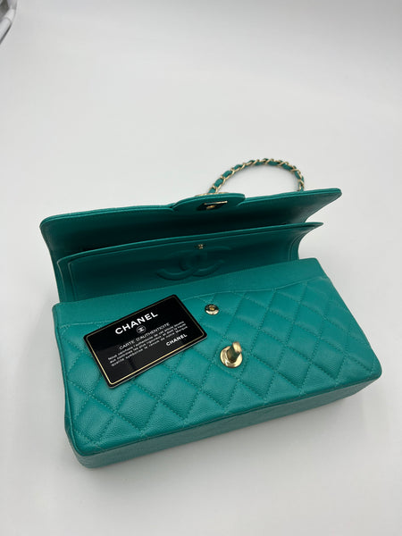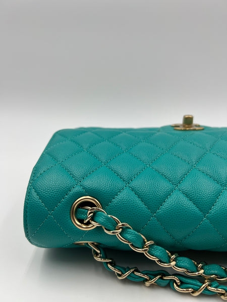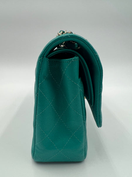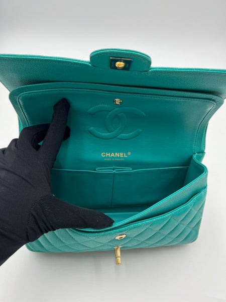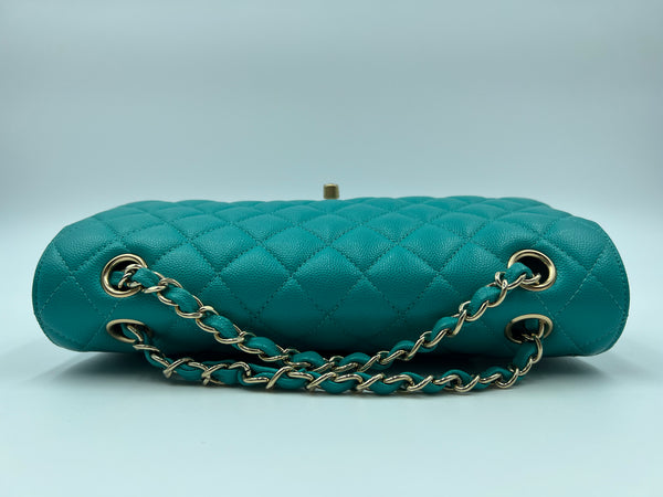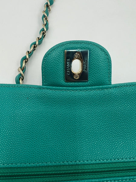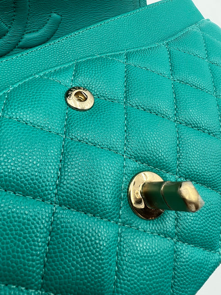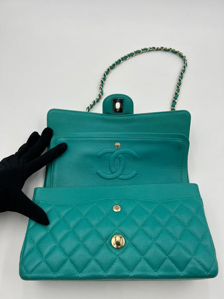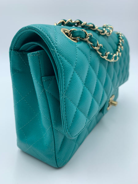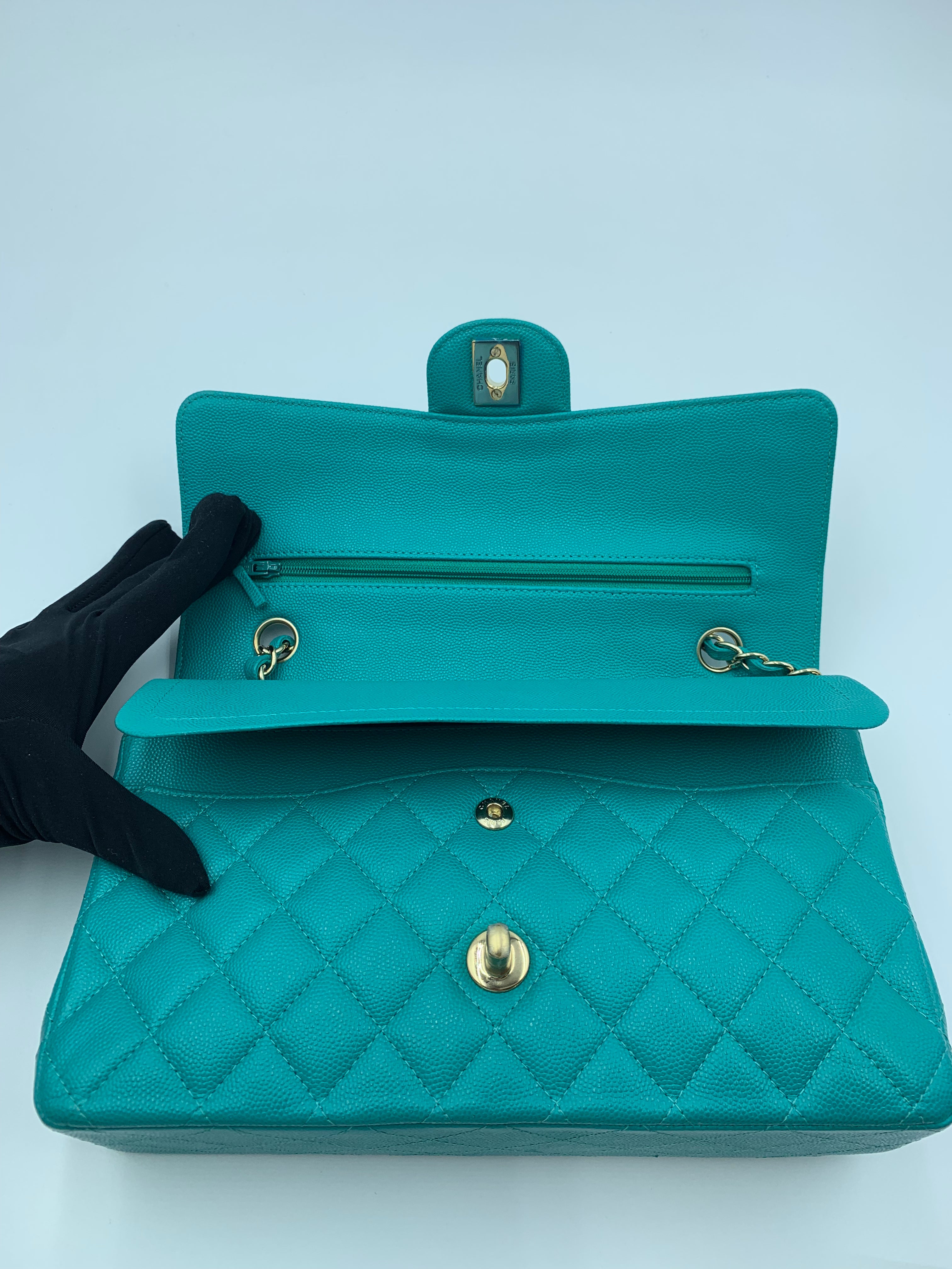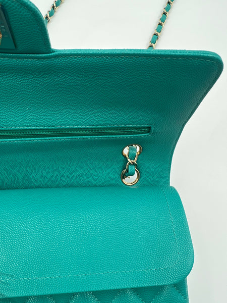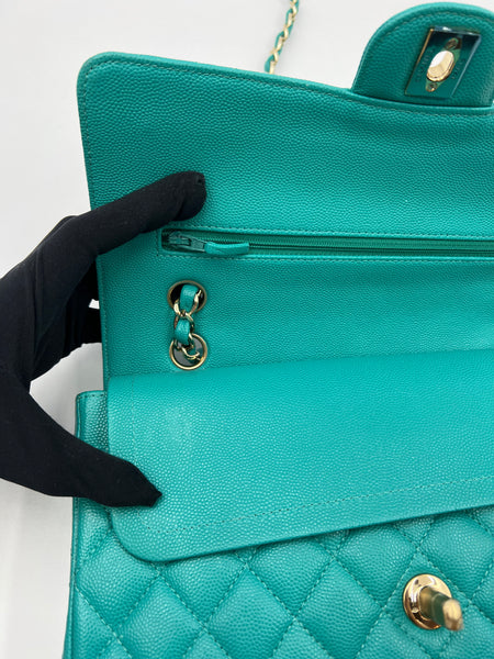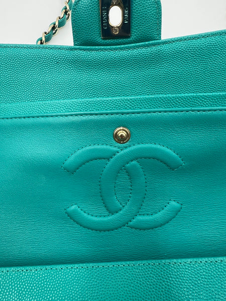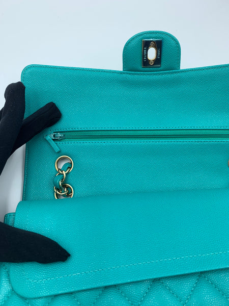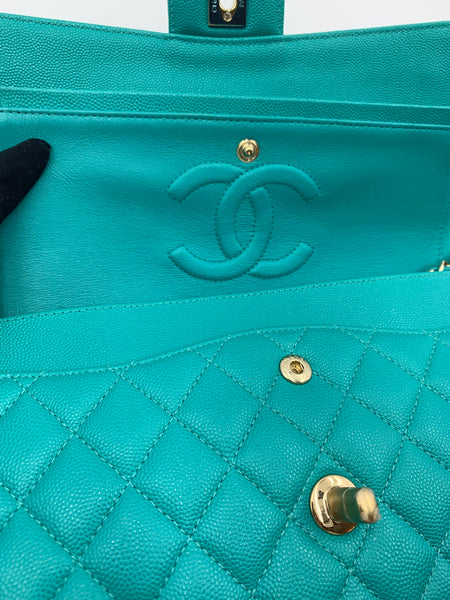 Chanel Timeless Classic Medium M/L 17C Turquoise Caviar/Grained Calfskin Gold-tone Hardware