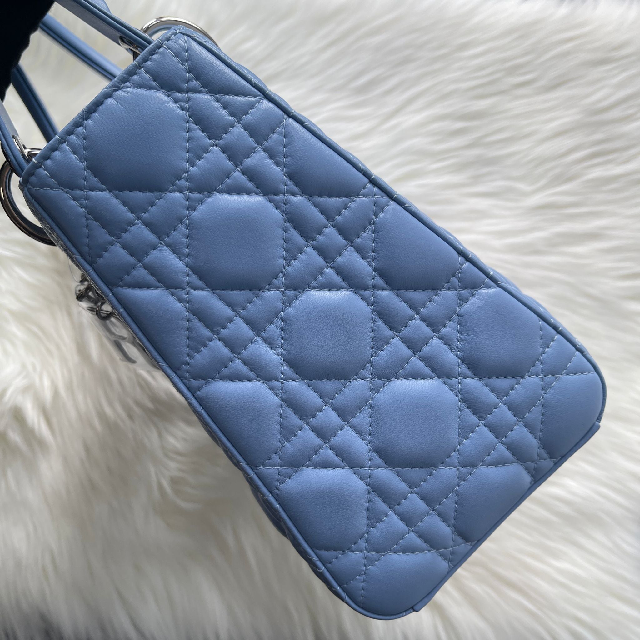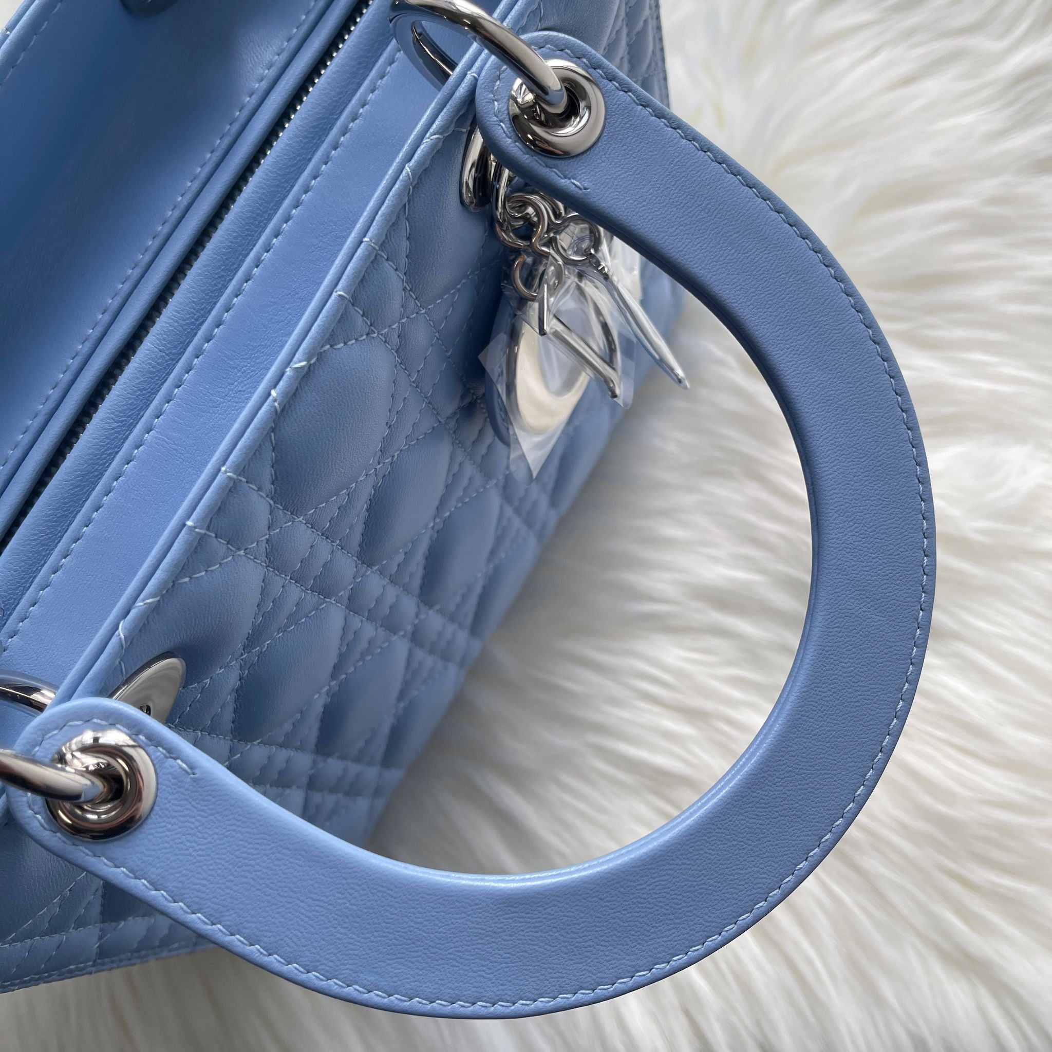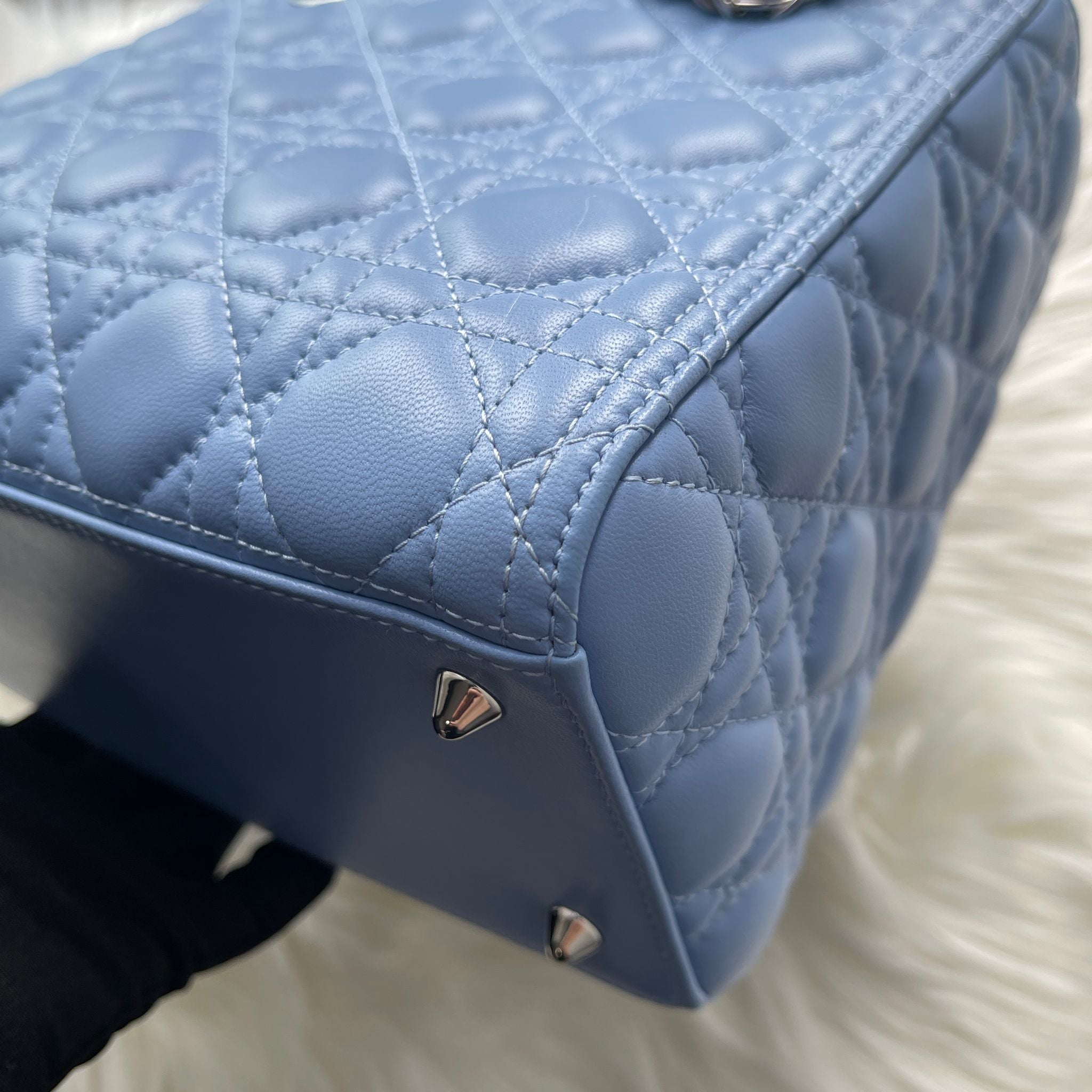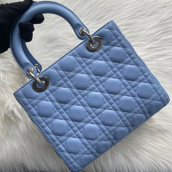 Christian Dior Lady Dior Medium Baby Blue Lambskin Silver-tone Hardware