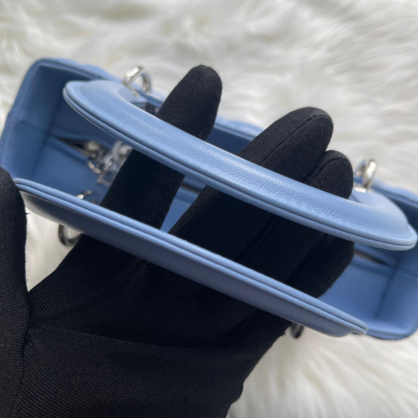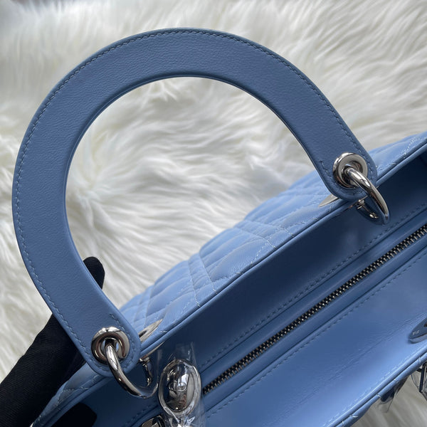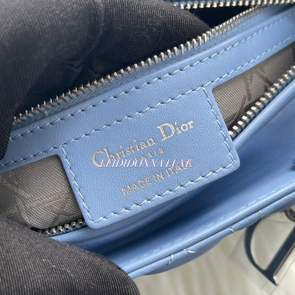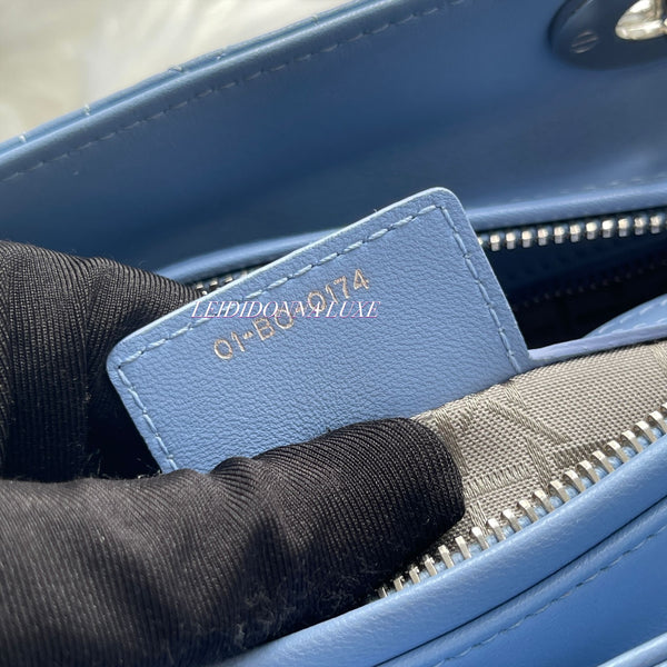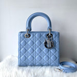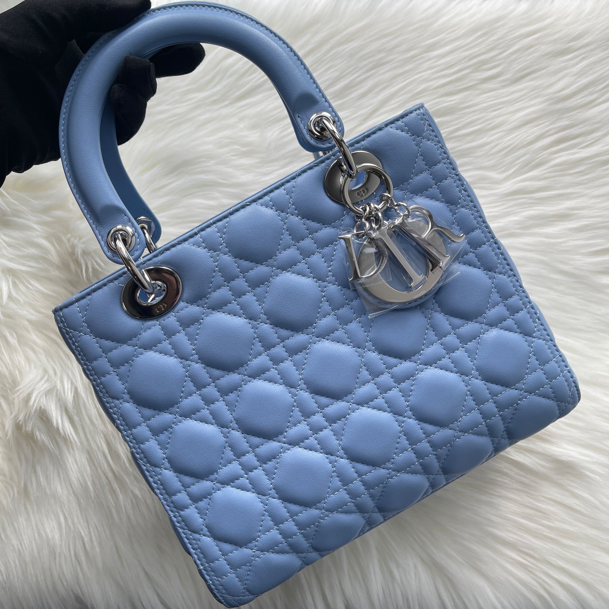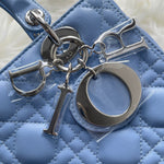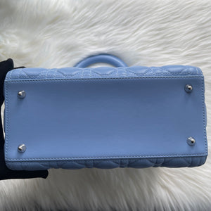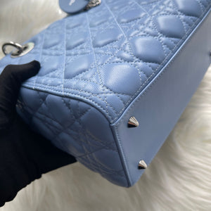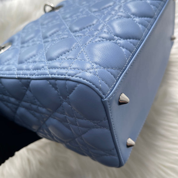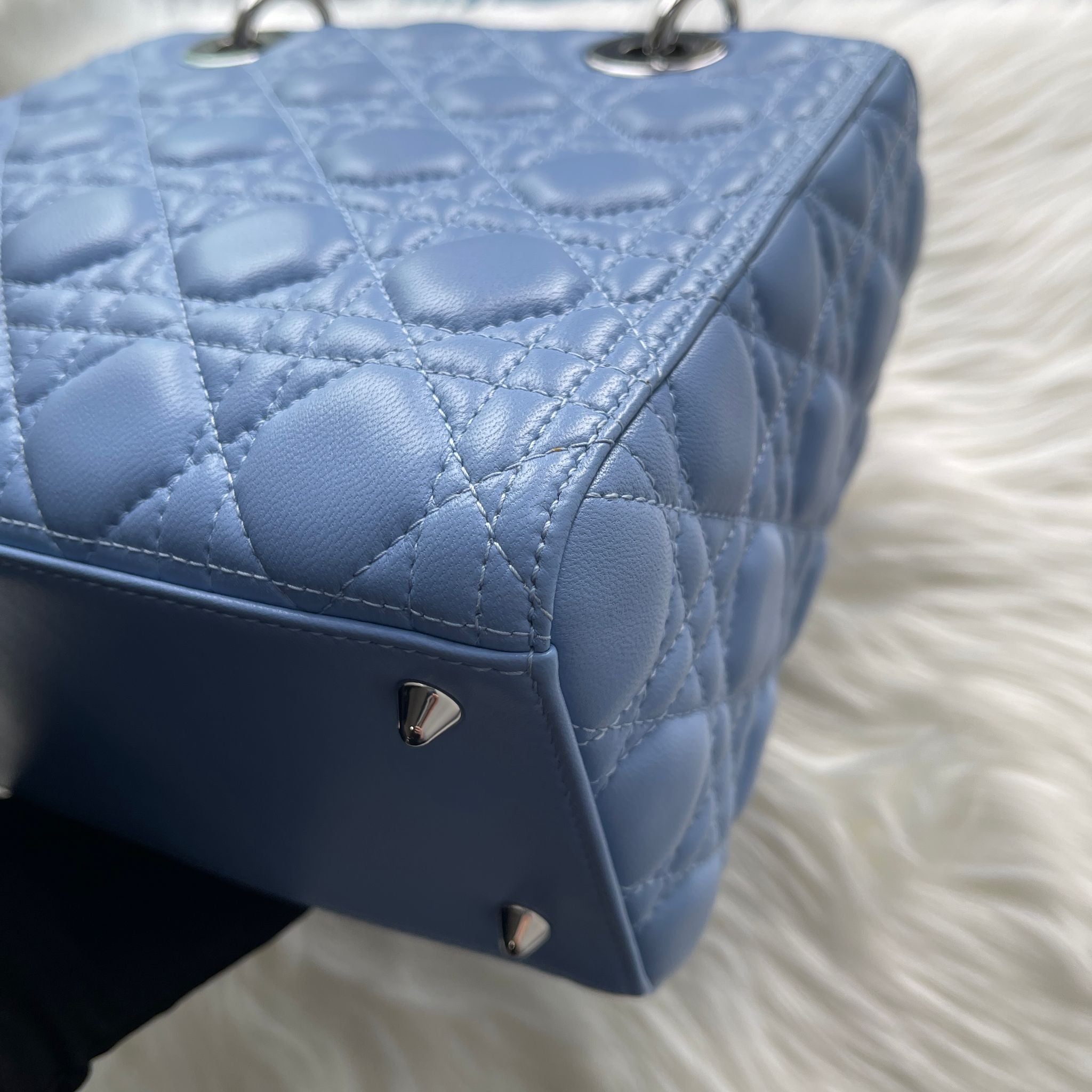 Christian Dior Lady Dior Medium Baby Blue Lambskin Silver-tone Hardware