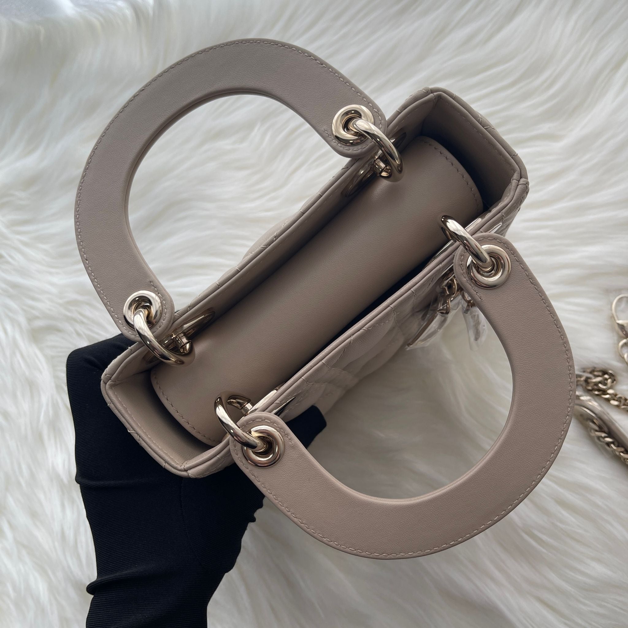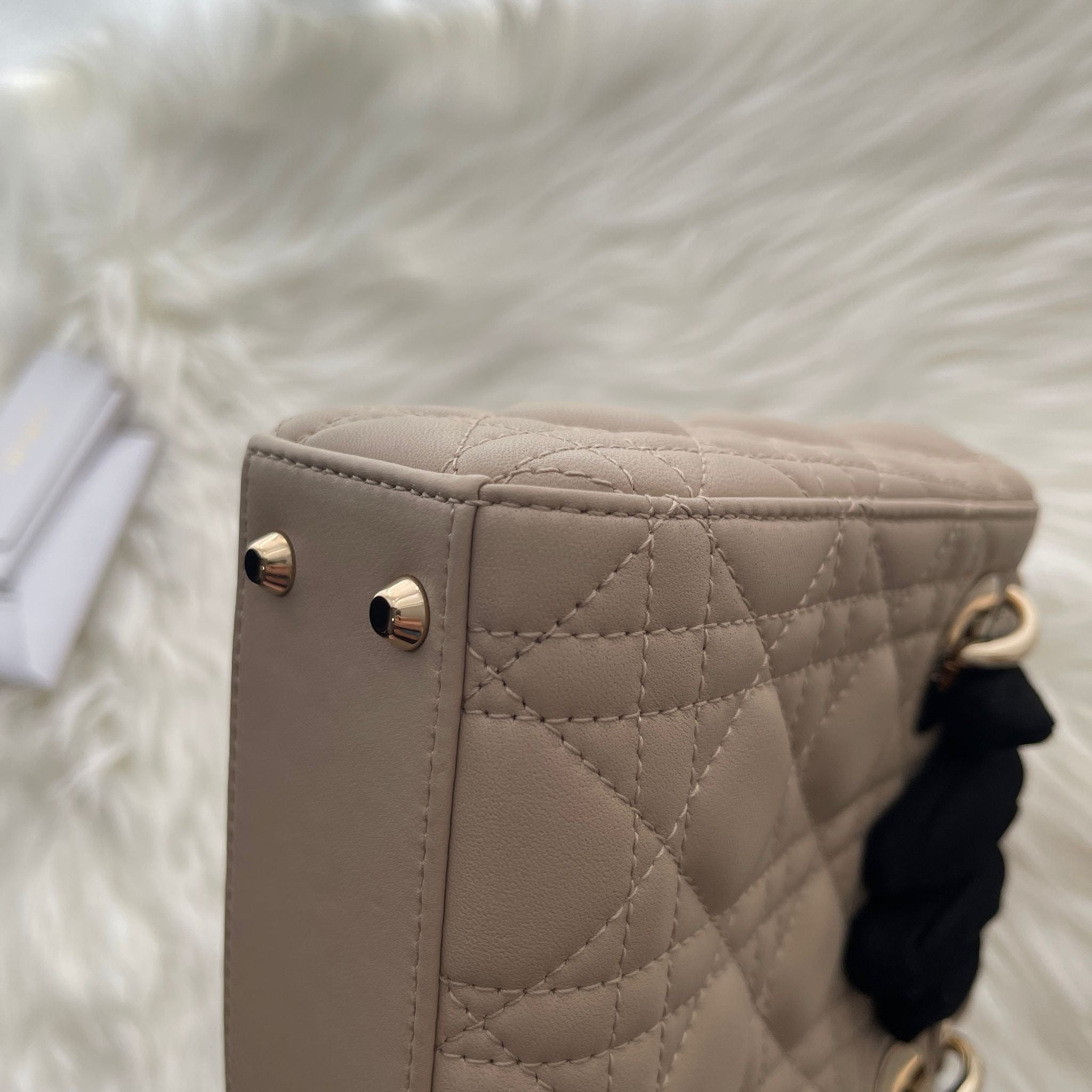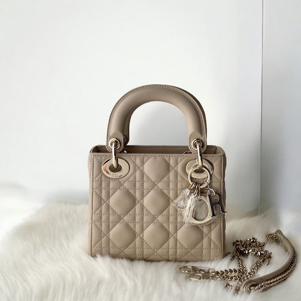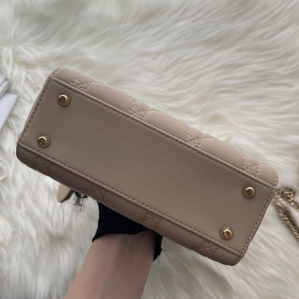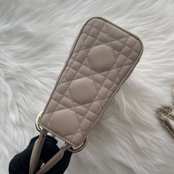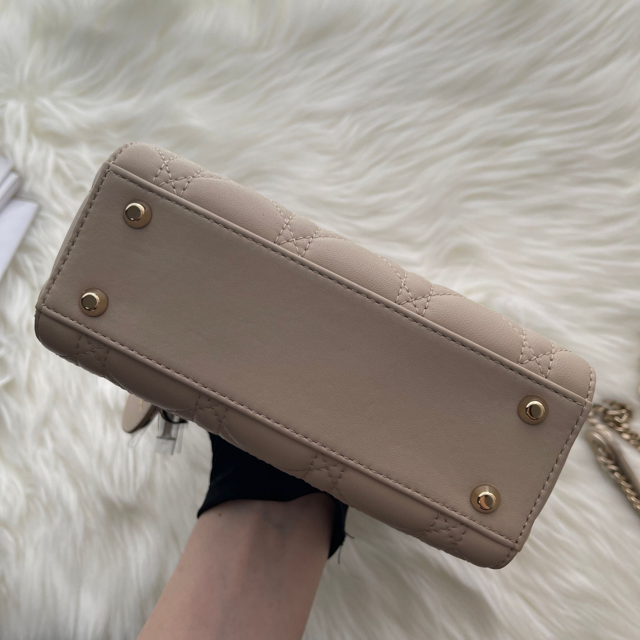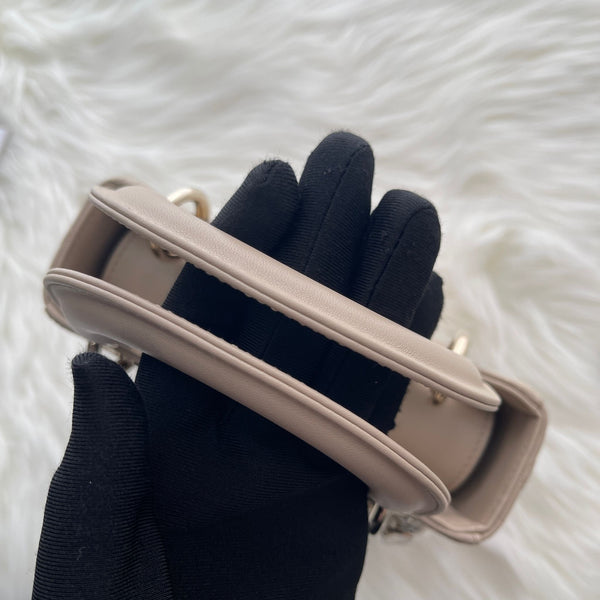 Christian Dior Lady Dior Mini Beige Lambskin Gold-tone Hardware