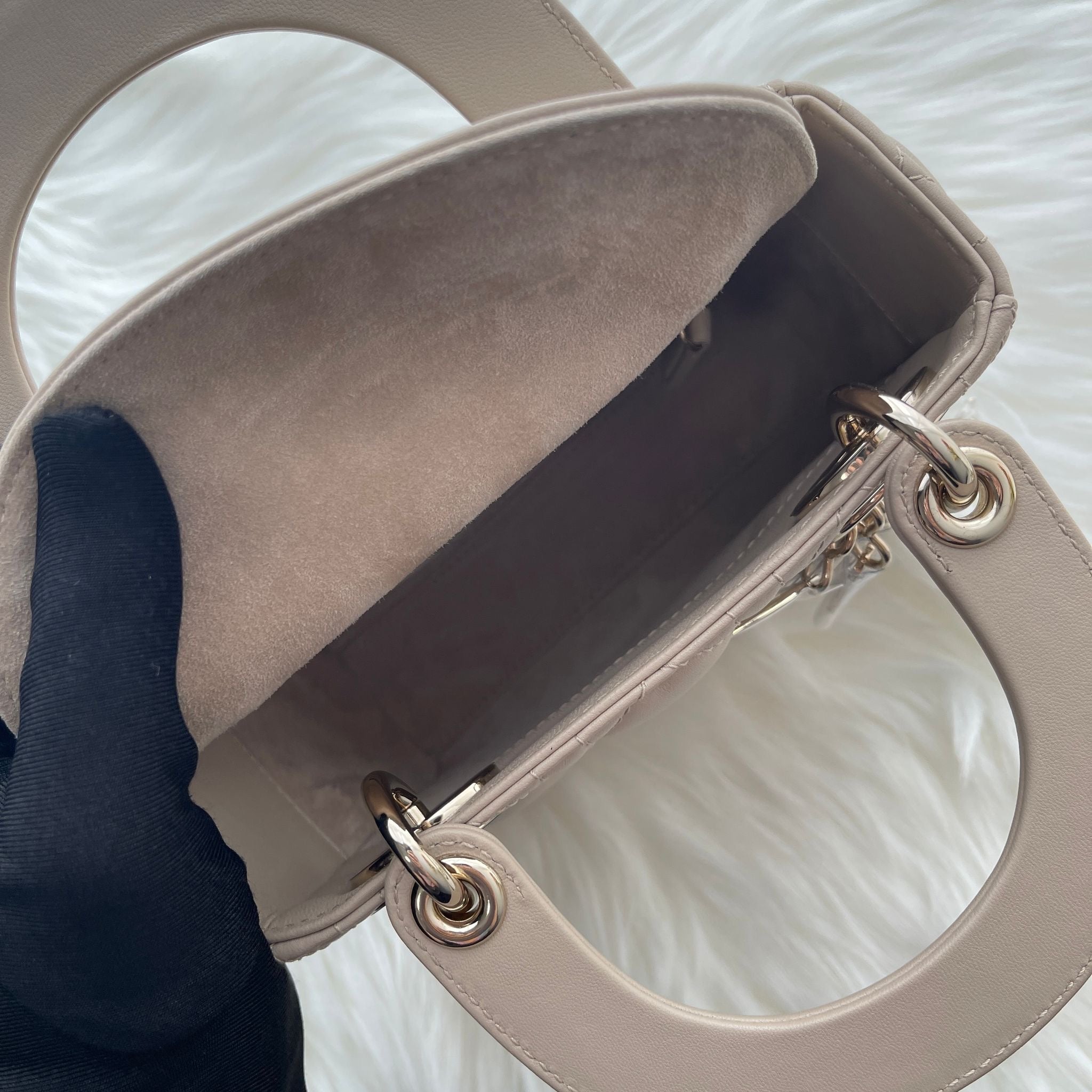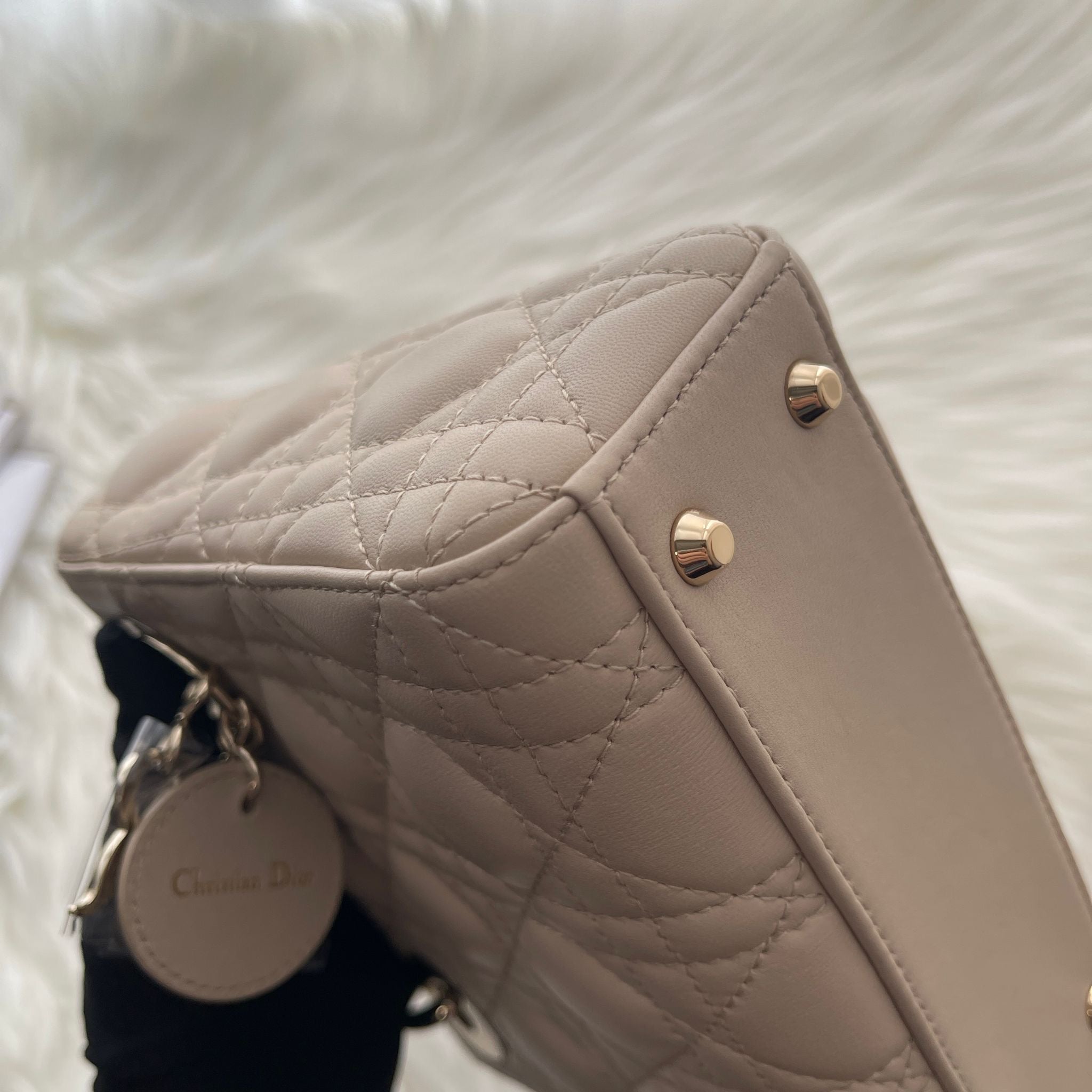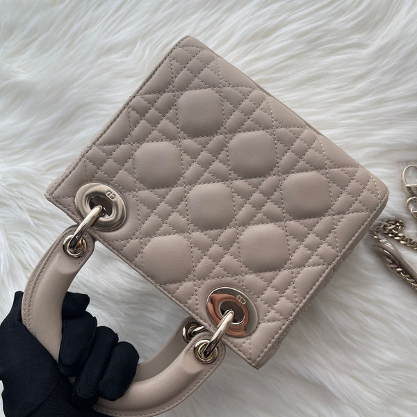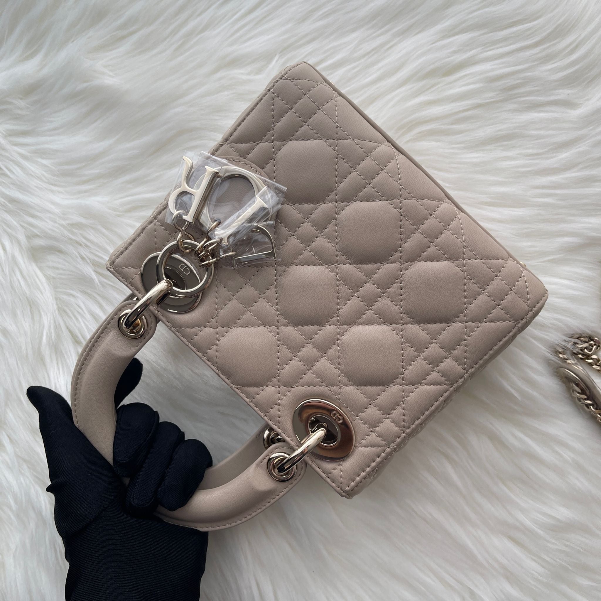 Christian Dior Lady Dior Mini Beige Lambskin Gold-tone Hardware