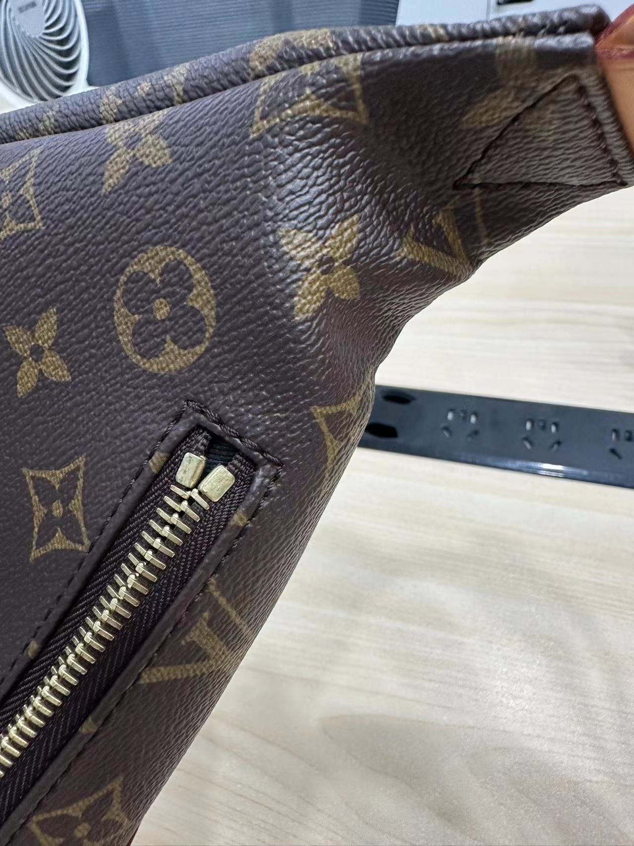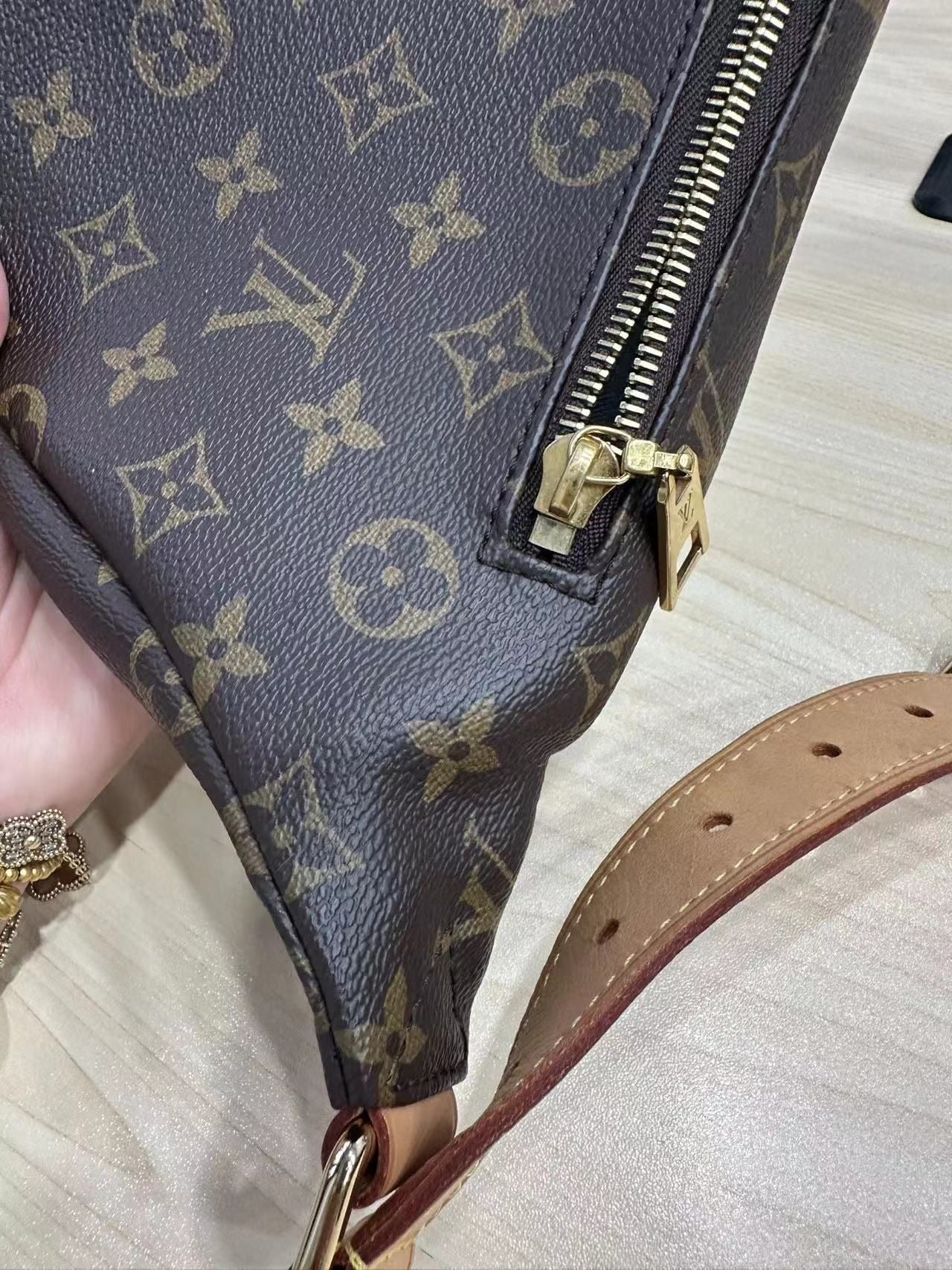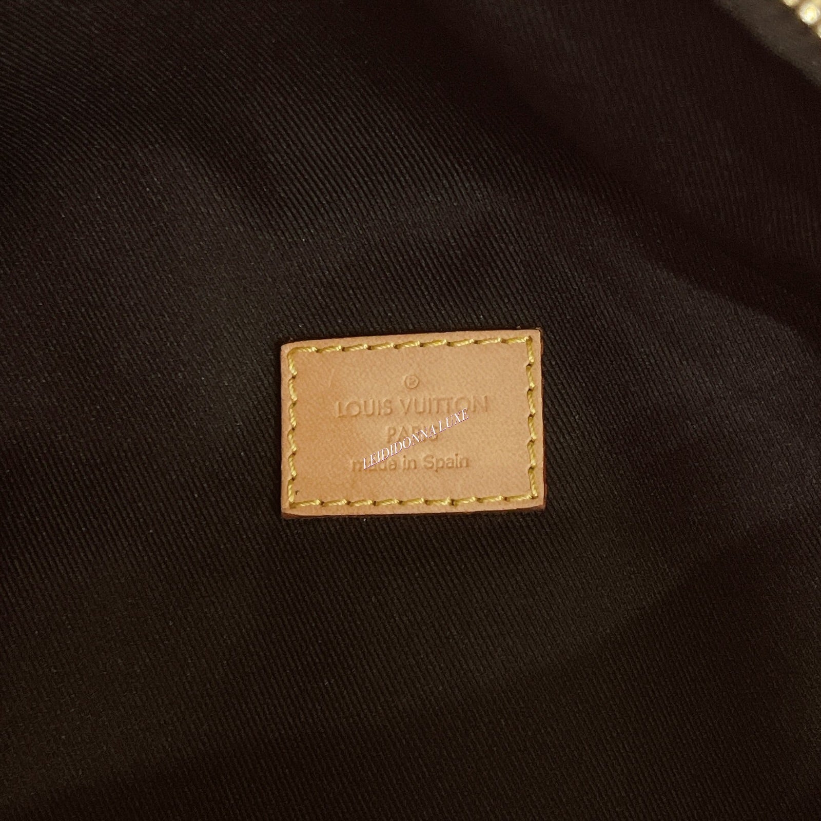 The spacious main compartment features a gold-tone zipper closure, perfect for keeping your essentials secure. A leather tag embossed with “Louis Vuitton Paris” and a polished D-ring detail on the front add a refined touch. Whether you're on the go or traveling light, this bumbag effortlessly blends fashion with function.
