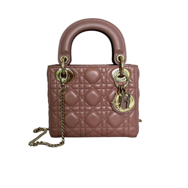 Christian Dior Lady Dior Mini  Beige-Pink/Fard Lambskin Cannage Gold-tone Hardware
