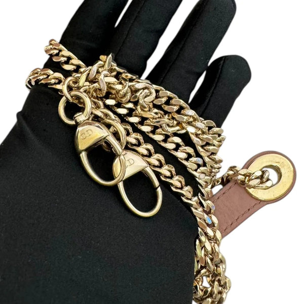 The structured silhouette is adorned with gold-tone hardware, including Dior’s signature charm detailing, adding a subtle yet glamorous accent. Its compact mini size makes it both chic and practical, perfect for carrying essentials with refined style.
