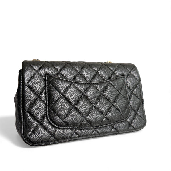Chanel Classic Mini Black Caviar, Gold-tone Hardware