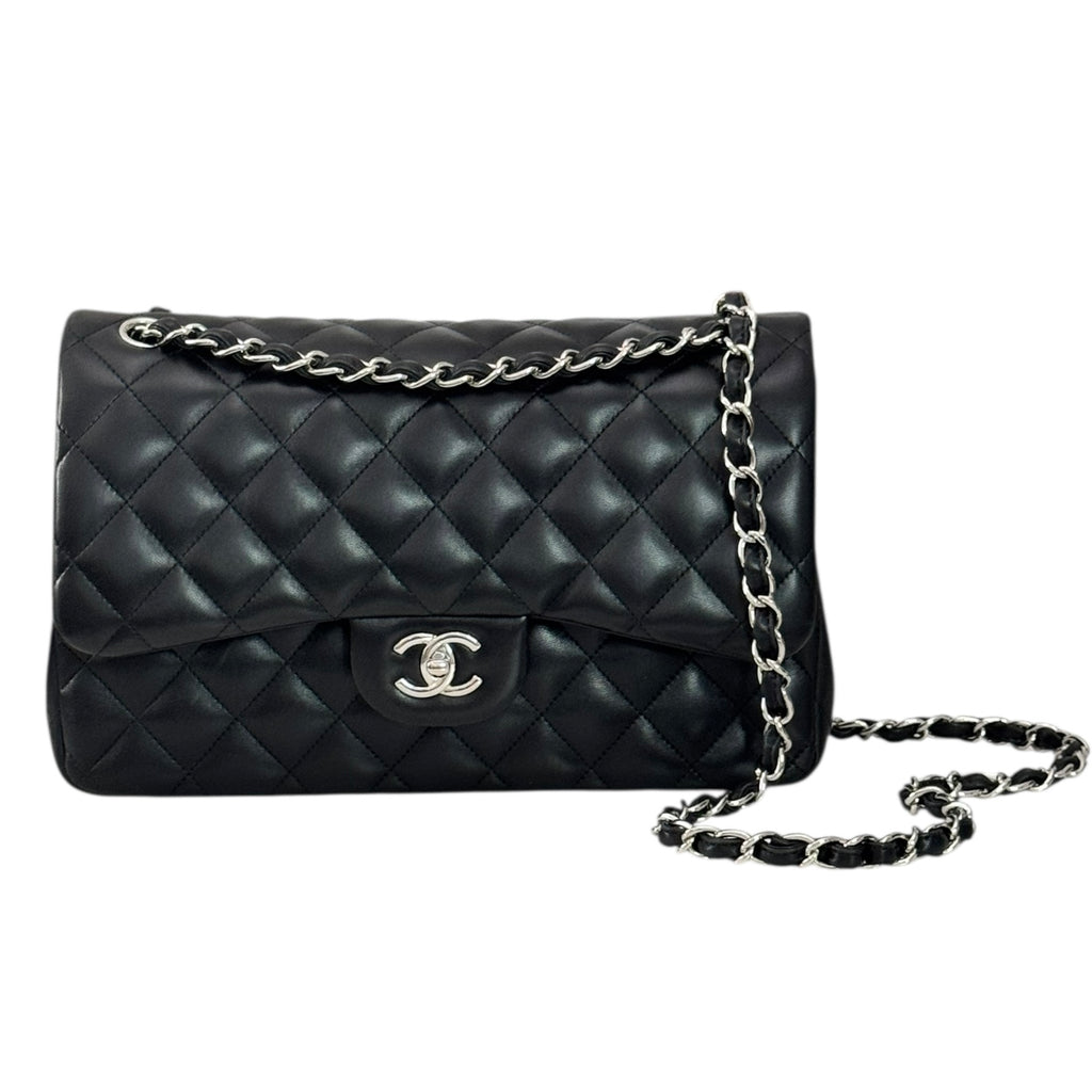 Chanel Timeless Classic Jumbo Black Lambskin Silver-tone Hardware