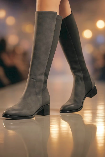 Classic and timeless Stuart Weitzman 50/50 Greer City knee-high boots crafted in black suede, featuring the brand’s iconic stretch back panel for a sleek, flattering fit. Designed for comfort and versatility, these boots are perfect for everyday wear while maintaining an elegant silhouette. A wardrobe staple that pairs effortlessly with dresses, skirts, or jeans.